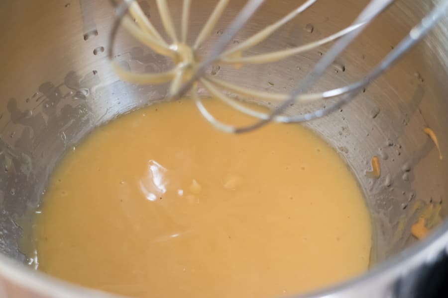 В желтки добавили соль, щепотку сахара, закрепили лопатку (нам показалось, что это будет прекрасный тест для нее) и начали перемешивание на третьей скорости. Край лопатки касался желтков, но перемешивания так такового не было. Влили немного растительного масла, затем уксуса — битер все так же елозил по поверхности, не смешивая продукты. Тогда мы заменили его венчиком. Работали сначала на третьей скорости, но вскоре перевели на четвертую.