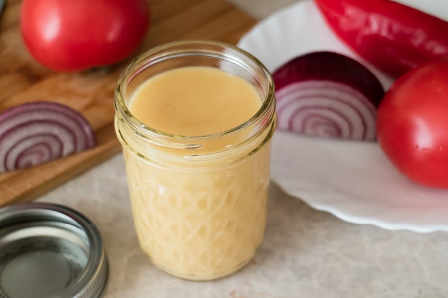 Поочередно добавляли масло и уксус, пока не получили довольно густую однородную эмульсию. В конце вмешали столовую ложку горчицы. Подходящий ко многим блюдам соус готов. На все-про все нам потребовалось около семи минут.