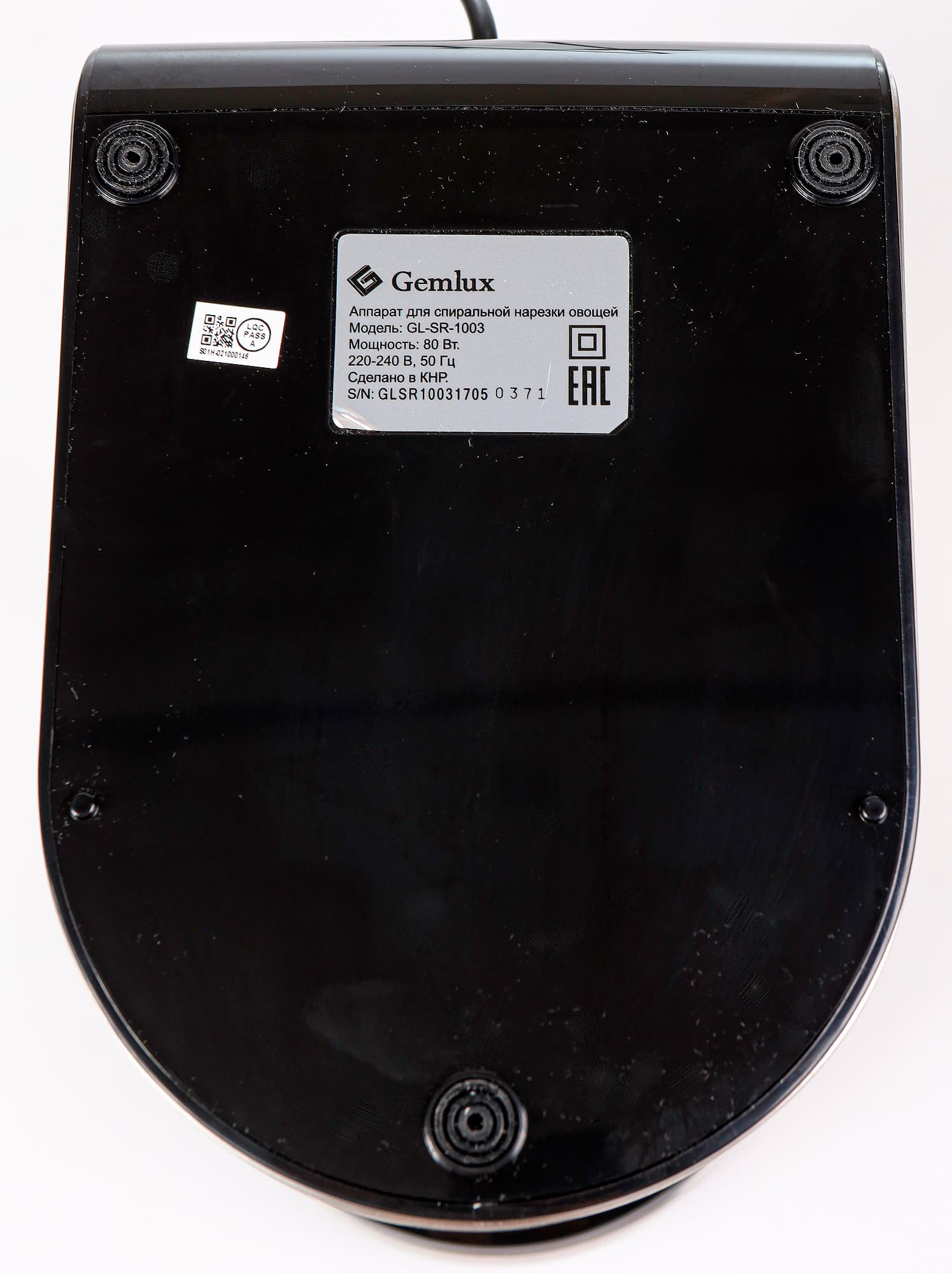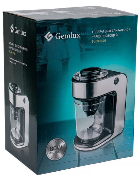 Спирализатор Gemlux GL-SR-1003 выглядит просто и благородно, изготовлен и собран весьма качественно, так что никаких недостатков в результате визуального осмотра не выявлено.
