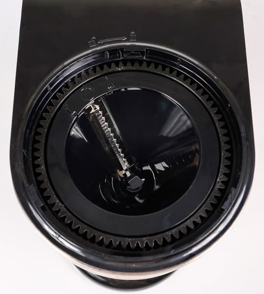 Несмотря на то, что в инструкции отсутствуют сведения по сборке, никаких затруднений с этим процессом у нас не возникло. Сборка и разборка аппарата интуитивно понятны. Вначале в корпус вставляется моторный блок с зубчатым венцом, затем в него — конус с лезвиями. Конструкция фиксируется горловиной, которую необходимо повернуть по часовой стрелке до щелчка. Сверху будет находиться проталкиватель с продуктом, внизу — чаша для нарезанного сырья.