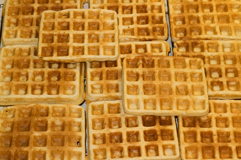 Поскольку вафли изначально несладкие, то можно организовать шикарный завтрак выходного дня для людей с разными вкусами. При этом желающие могут съесть вафли со сладкими топпингами, а другие, поджарив яйца и бекон, или просто положив на вафлю кусочек сыра, получить сытное несладкое блюдо.