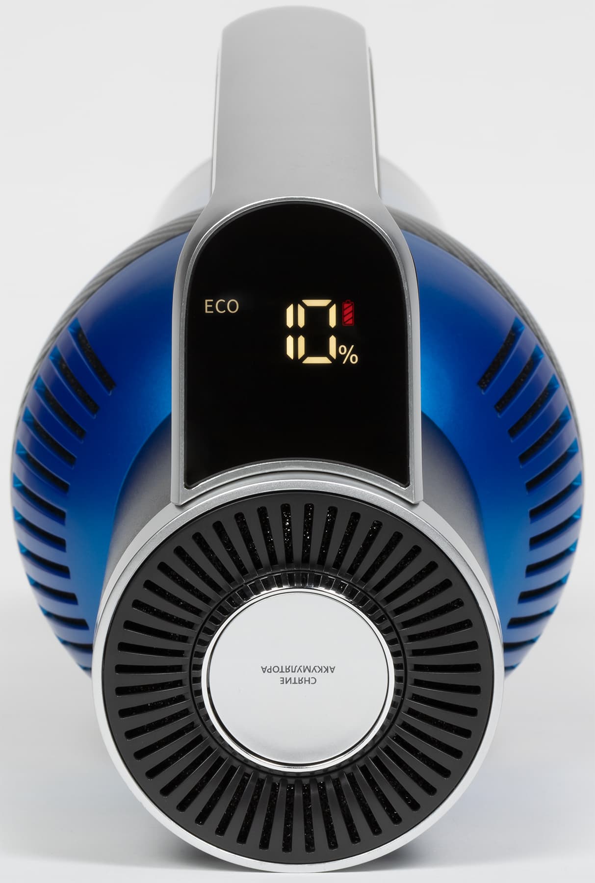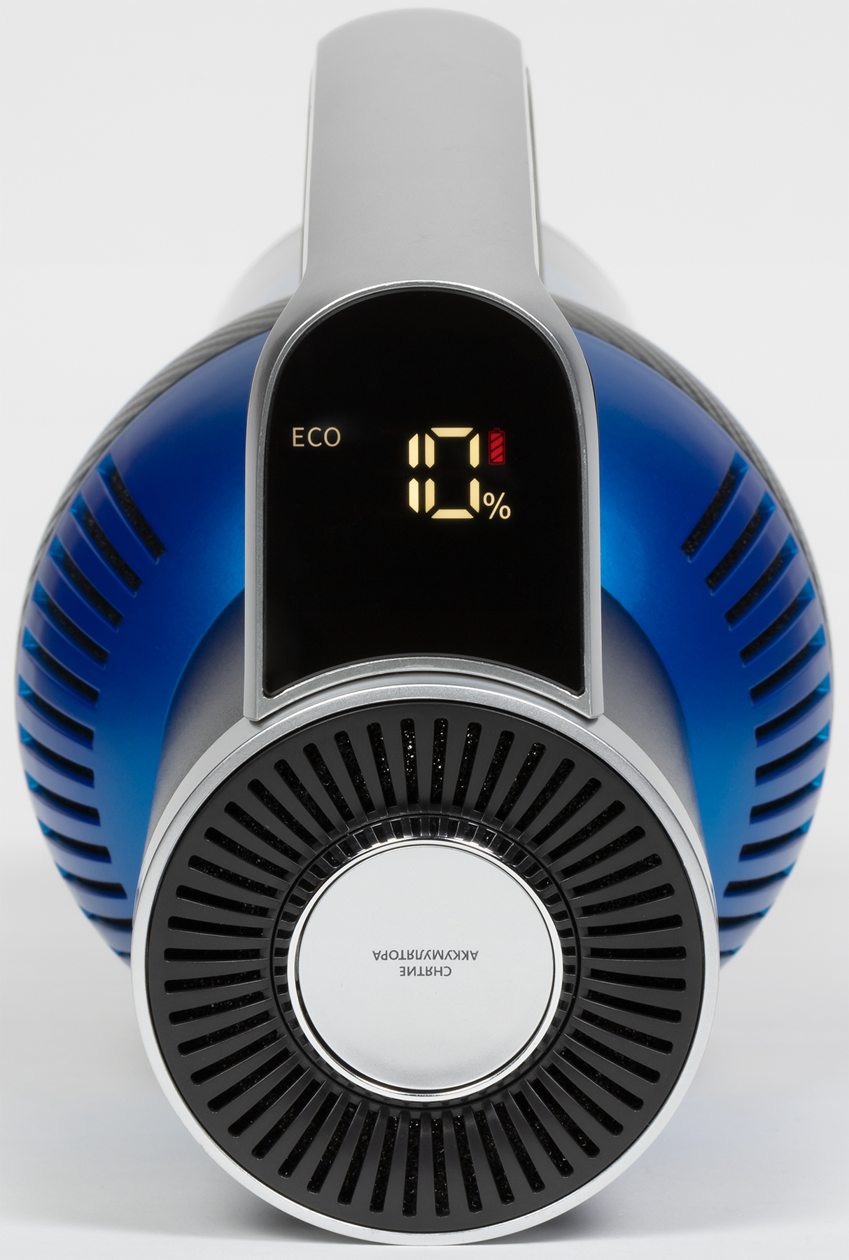 По умолчанию Genio M30 включается в режиме средней мощности. Однократное нажатие на кнопку выбора режима переводит прибор на максимальные обороты, двукратное — в экономичный режим. Если при работе на максимуме заряд аккумулятора падает ниже 20%, устройство автоматически снижает силу всасывания до средней — благодаря этой опции можно продлить уборку еще на четыре-пять минут.