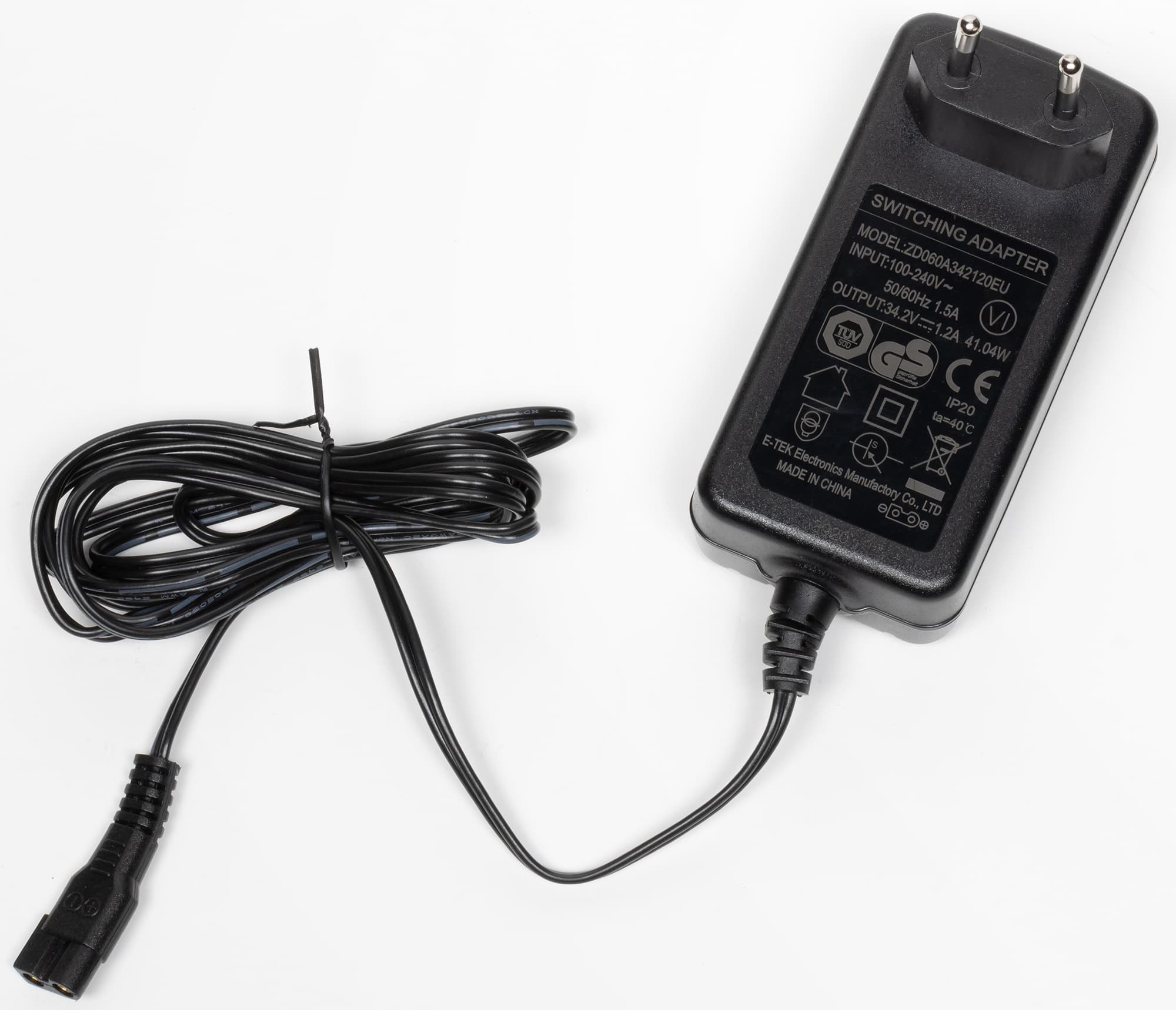 Он выдает напряжение 34,2 В с силой тока в 1,2 А.