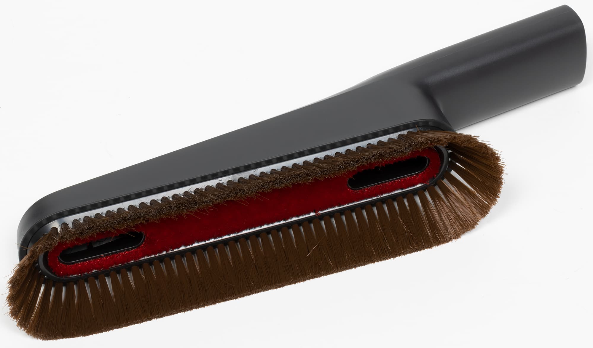 Моторная щетка для мягкой мебели и матрасов также нас порадовала. Хотя в ее конструкции мы не обнаружили каких-либо заметных нововведений (это типовое решение), чистить диваны и кровати ей очень удобно.