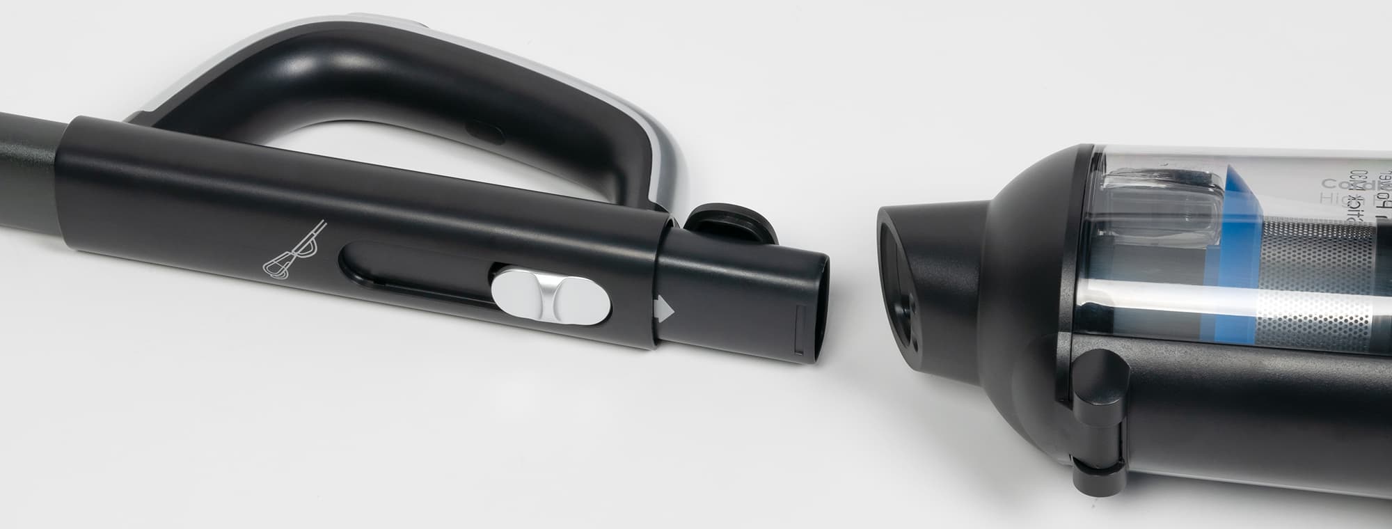 Ручка подсоединяется к передней части моторного блока и трансформируется в удлинитель, позволяющий очистить куда больше ранее недоступных поверхностей.
