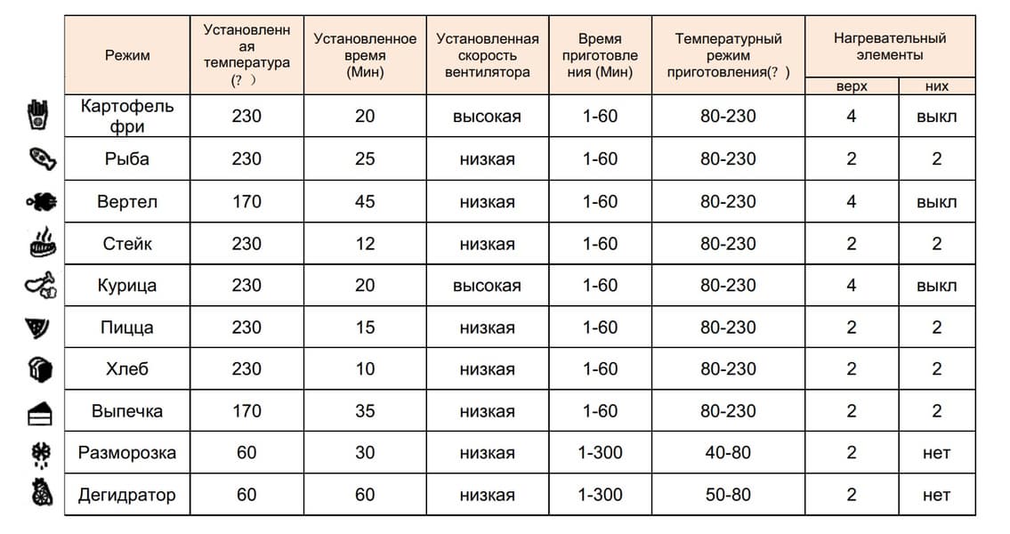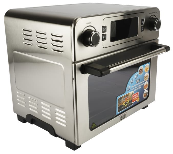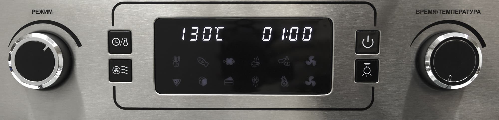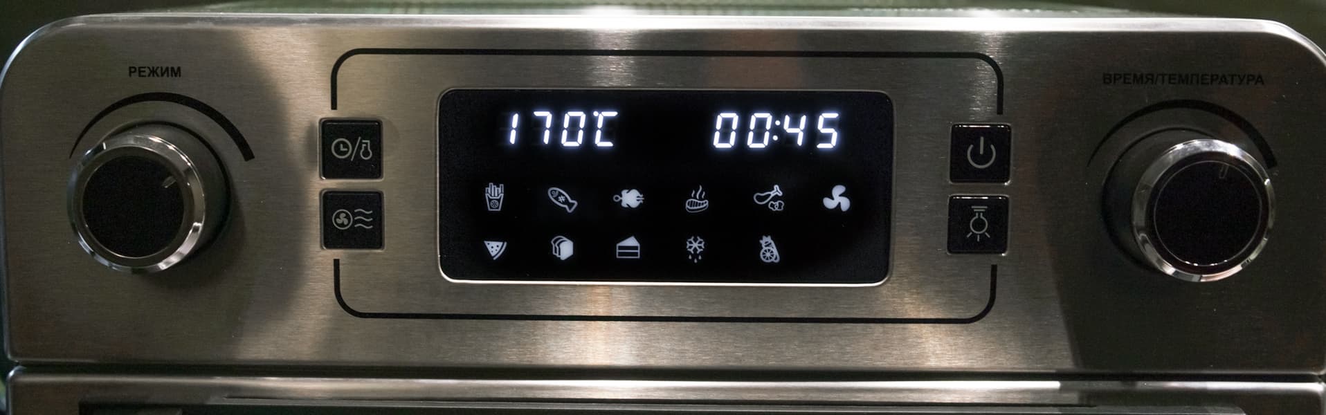 В процессе приготовления на дисплее отображается вся необходимая информация: выбранный режим, температура, уровень мощности вентилятора и время, оставшееся до конца программы. О начале и завершении работы сообщает негромкий звуковой сигнал. Звуки при регулировке параметров также мягкие и не раздражающие.