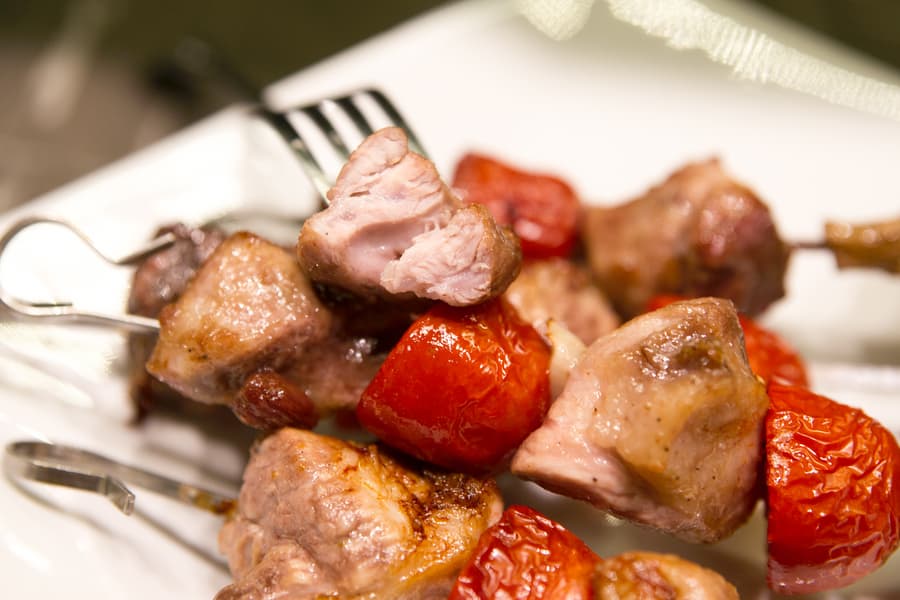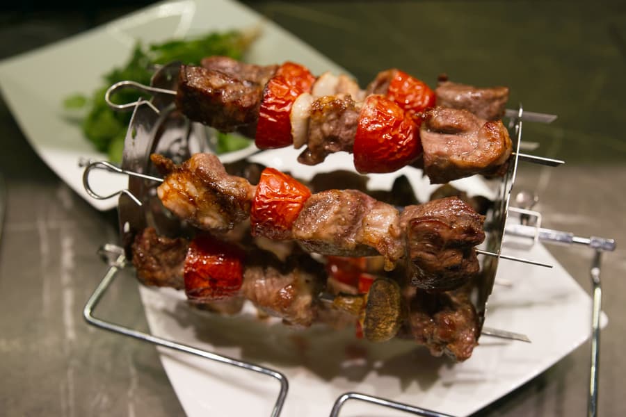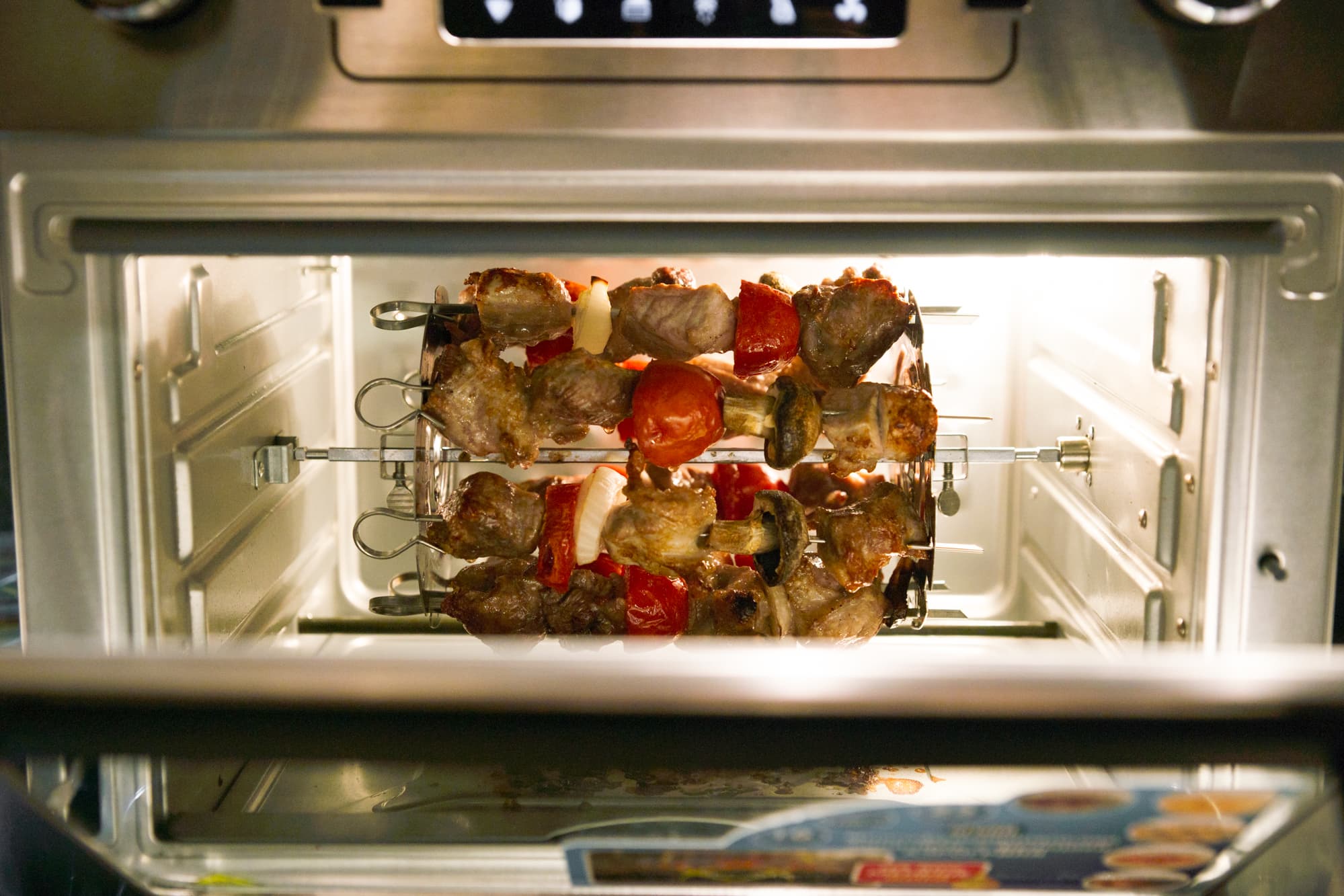 За 10 минут до окончания увеличили скорость вентилятора и повысили температуру до 200 °C. Шашлыки получились хорошо подрумяненными, полностью готовыми внутри и сочными.
