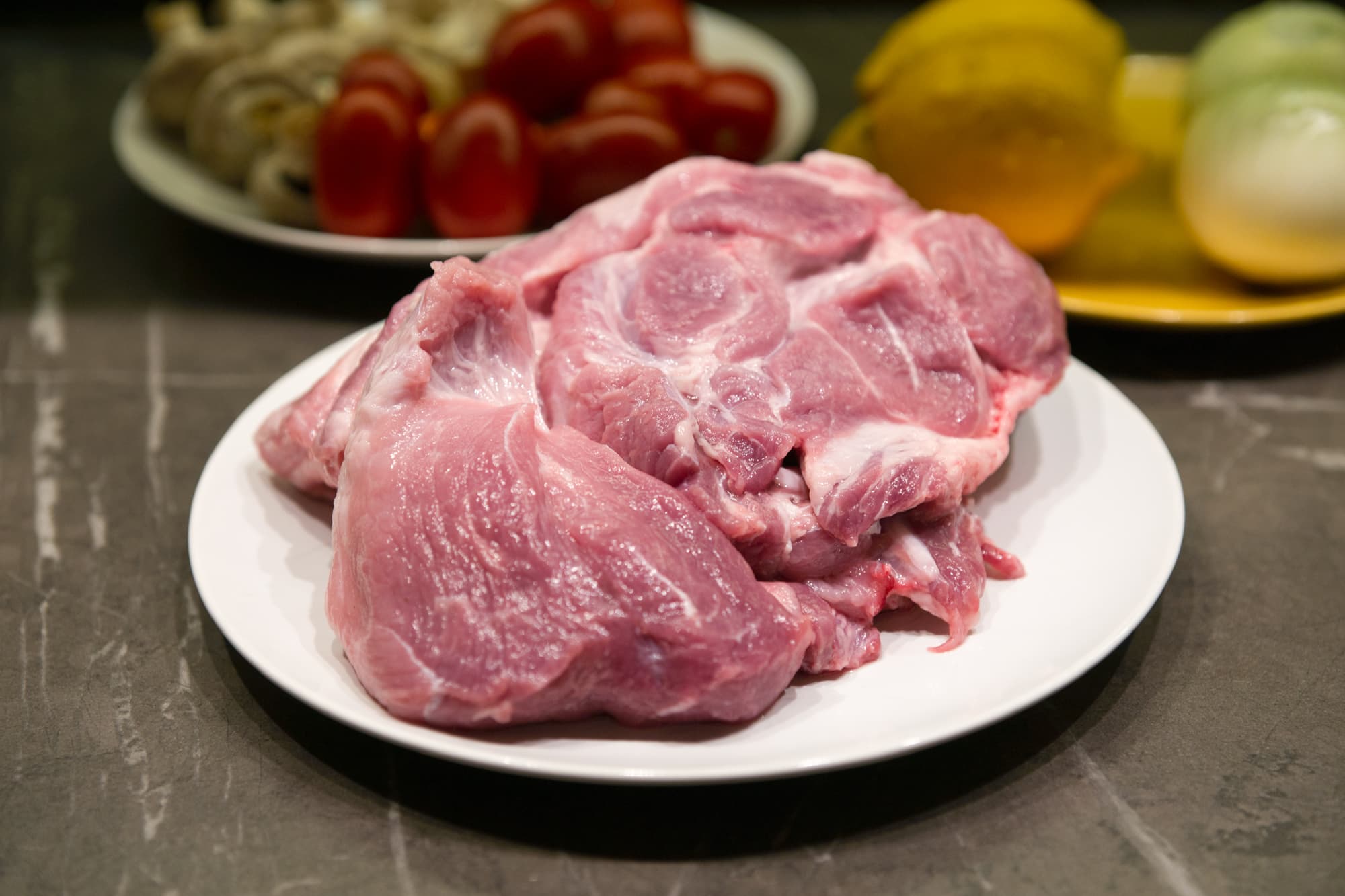 Для шашлыков мы подготовили свиную шею, разрезали ее на небольшие кусочки и дали полежать в маринаде. Шампуры выглядят игрушечными, но на каждый нам удалось нанизать в среднем около 150-180 г мяса, то есть в общей сложности мы разместили в конструкции 1,3 кг шашлыка, что не так уж мало.