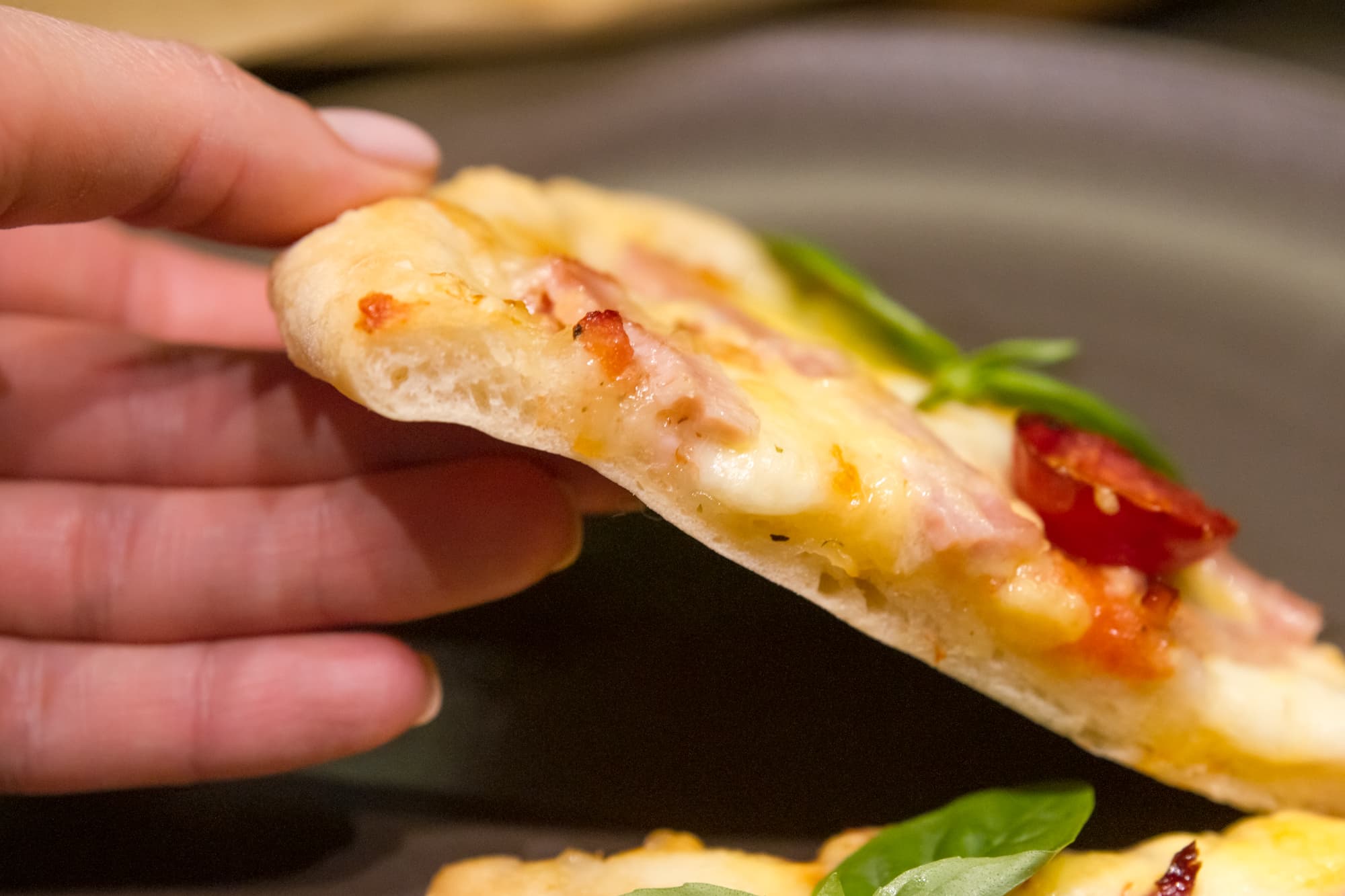 Главное — что у нас всё получилось: сыр должным образом расплавился, а тесто пропеклось по всей плоскости.