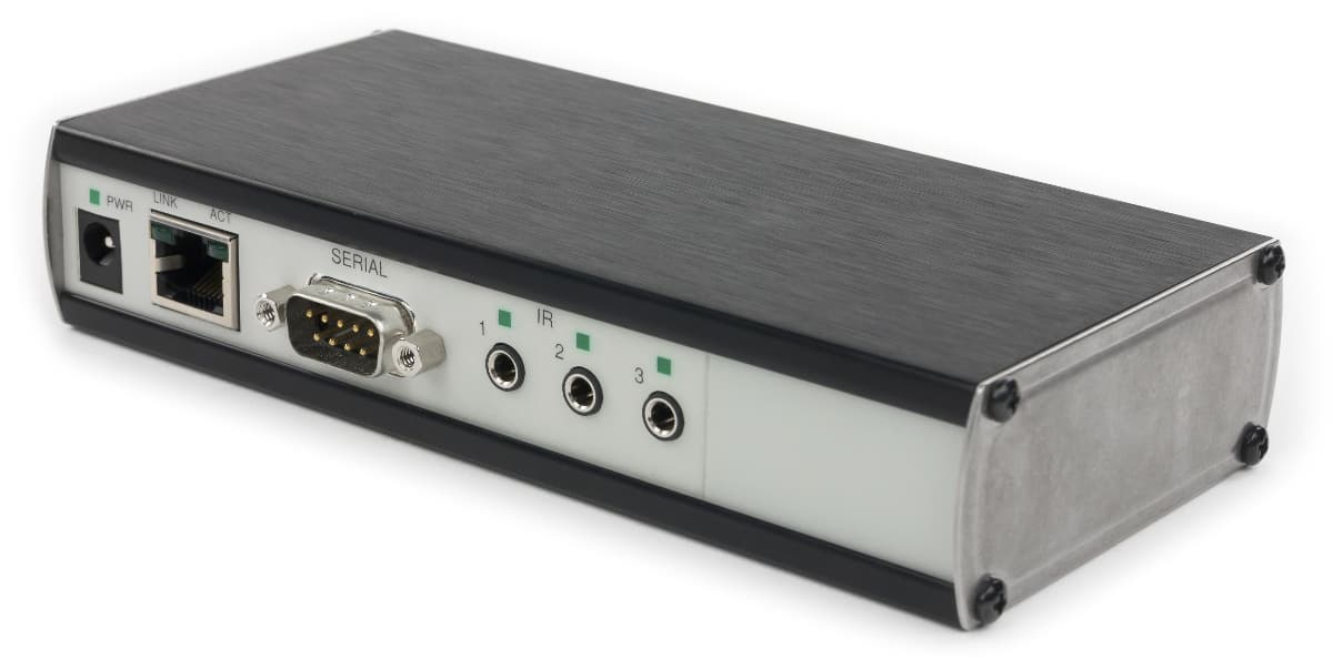 В большинстве случаев, эти устройства используют два варианта внешнего контроля — с применением инфракрасного пульта или последовательного порта (RS-232). В некоторых ситуациях может оказаться полезной и эмуляция нажатия кнопок (замыкание контактов). Учитывая многообразие современных сред и протоколов в системах автоматизации, подстроиться под каждый из них может быть непросто. К счастью, существует универсальное решение — работа по IP-протоколу. Именно он выступает сегодня в роли связующего звена в решениях всех масштабов и категорий стоимости. Таким образом, широко востребованными оказываются адаптеры, выступающие в роли «преобразователей» сетевого протокола в указанные выше варианты интерфейсов.