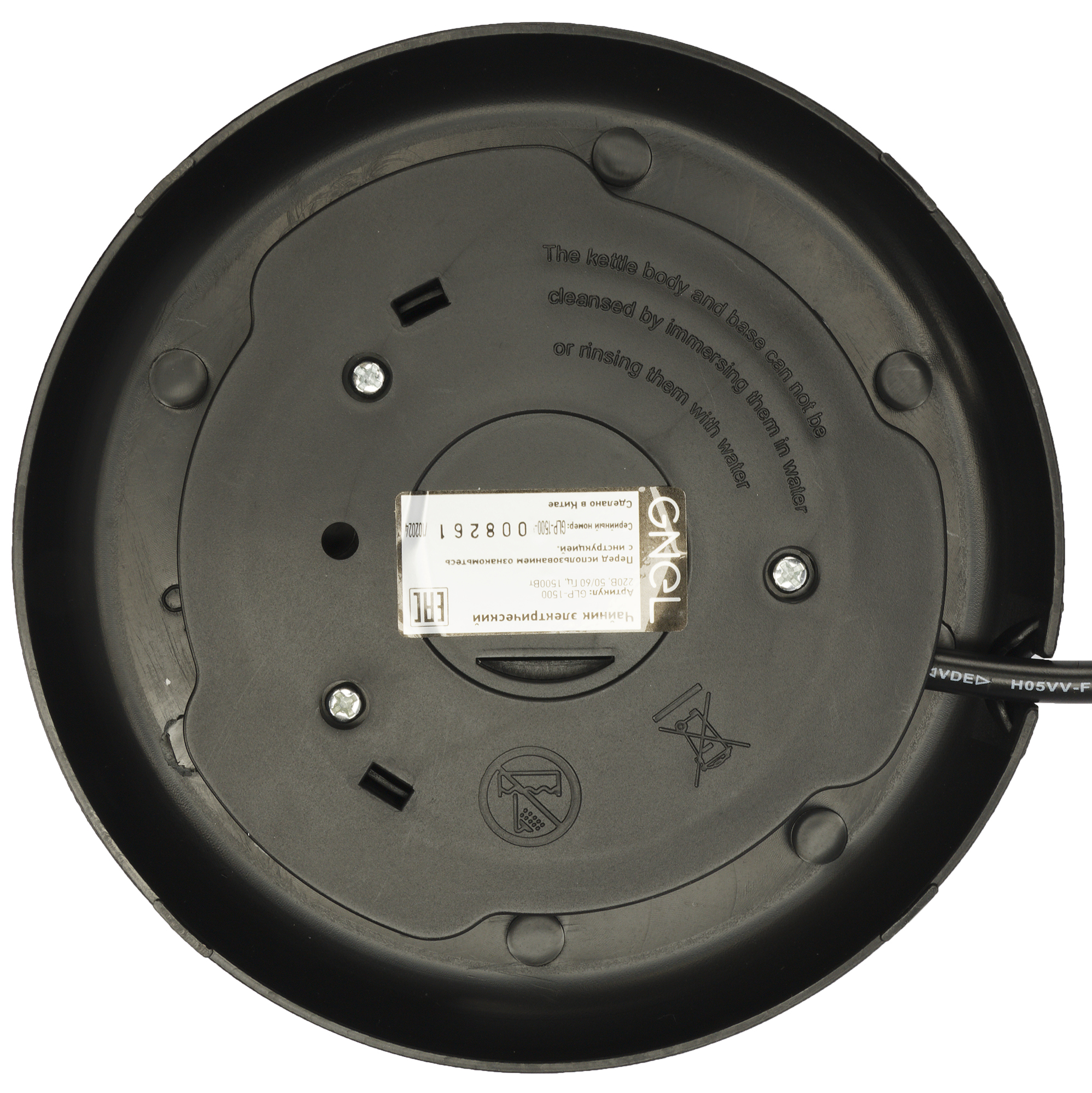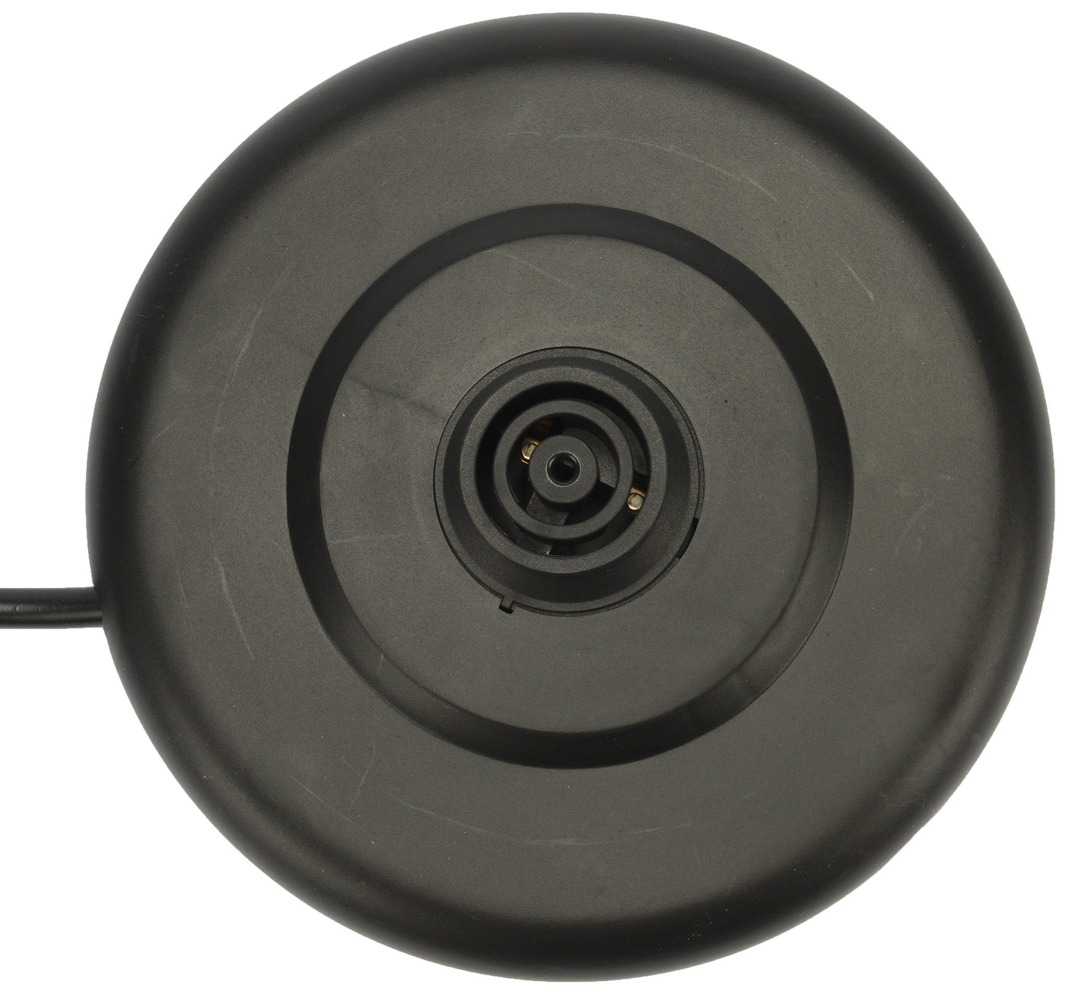 Верхняя часть базы покрыта тем же черным пластиком, что и остальные элементы корпуса. Конструкция базы позволяет свободно вращать чайник по кругу.
