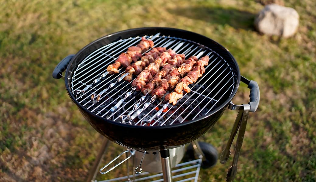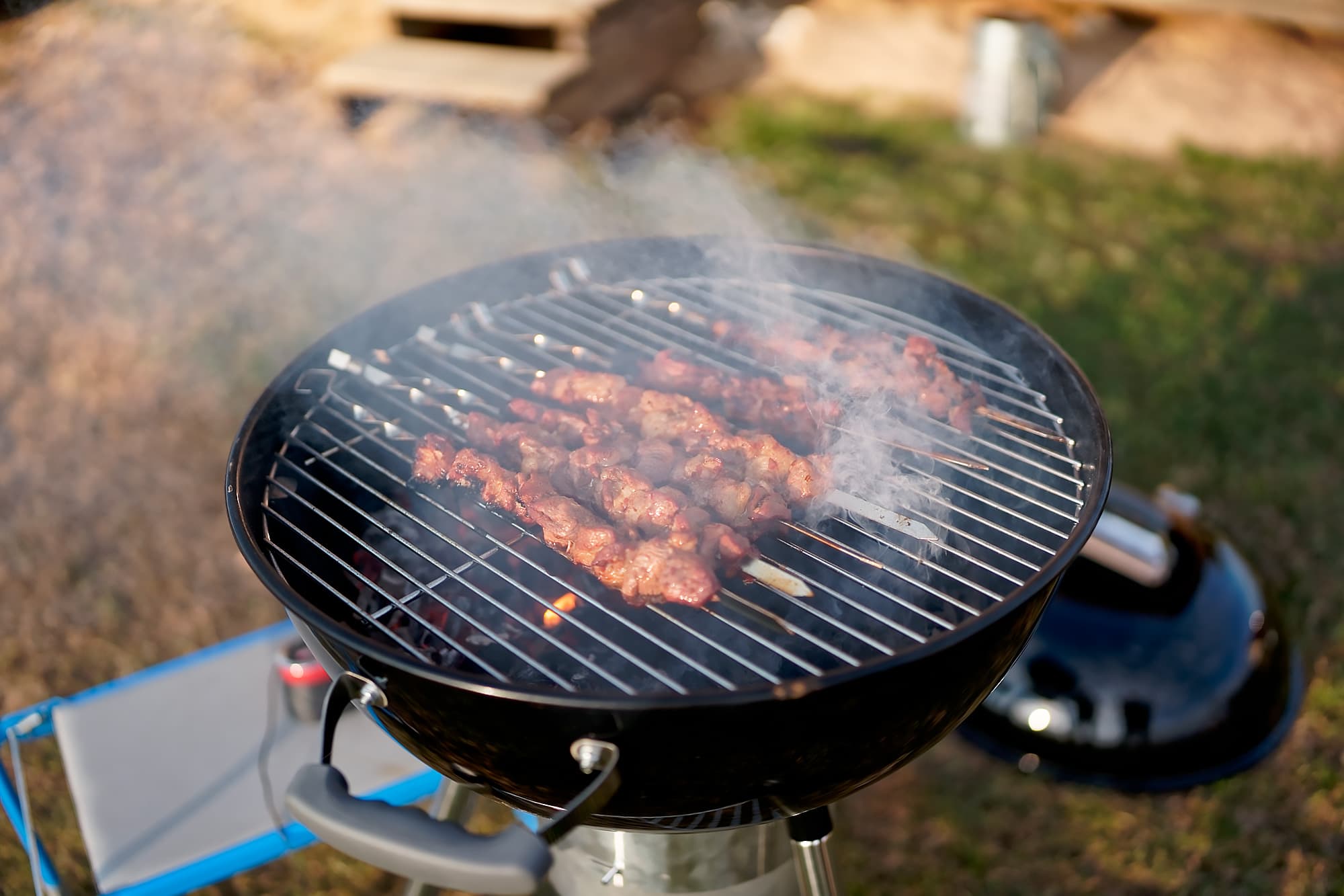 Для ускорения процесса гриль накрыли крышкой, под которую пару раз заглядывали для переворачивания шампуров.
