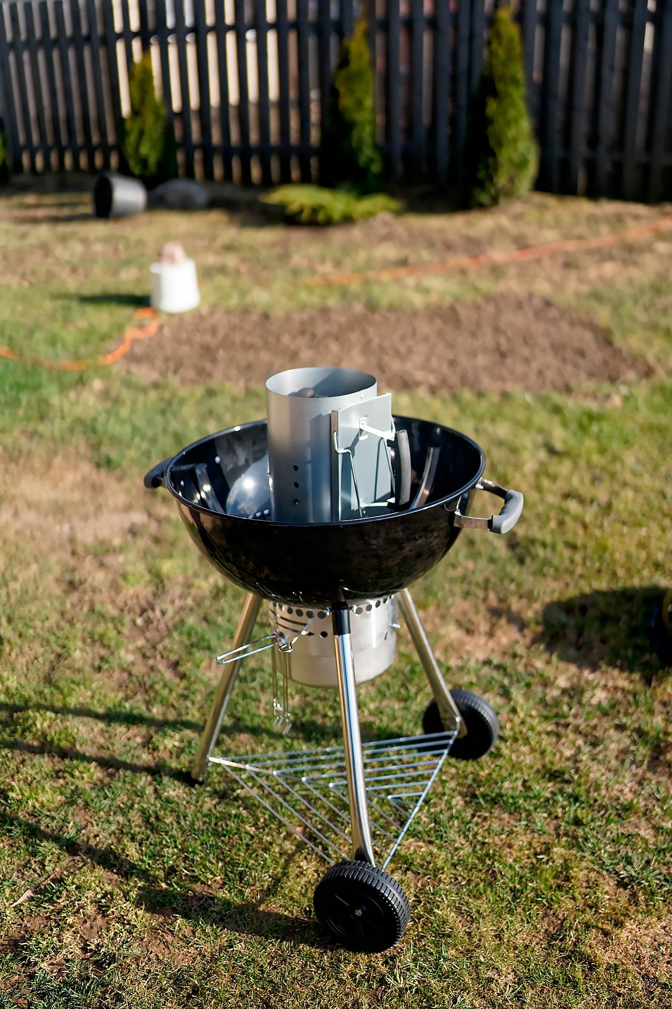 Остатки золы из нижней части легко вымываются на землю потоком воды из садового шланга. Только не делайте этого с горячим грилем — «убьете» эмаль и сильно сократите срок его службы.