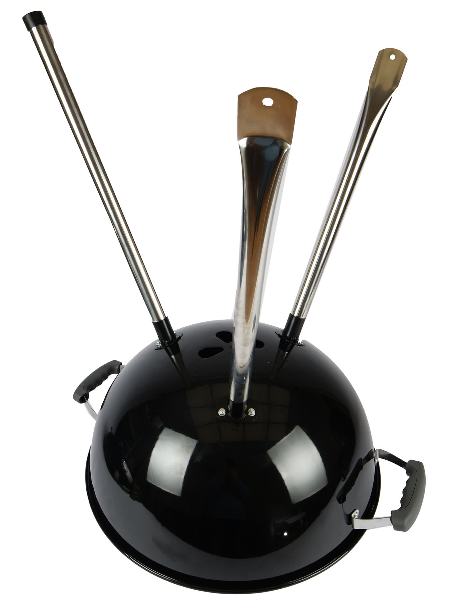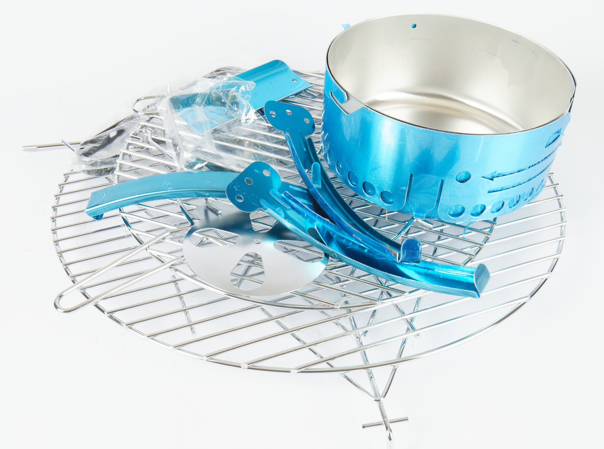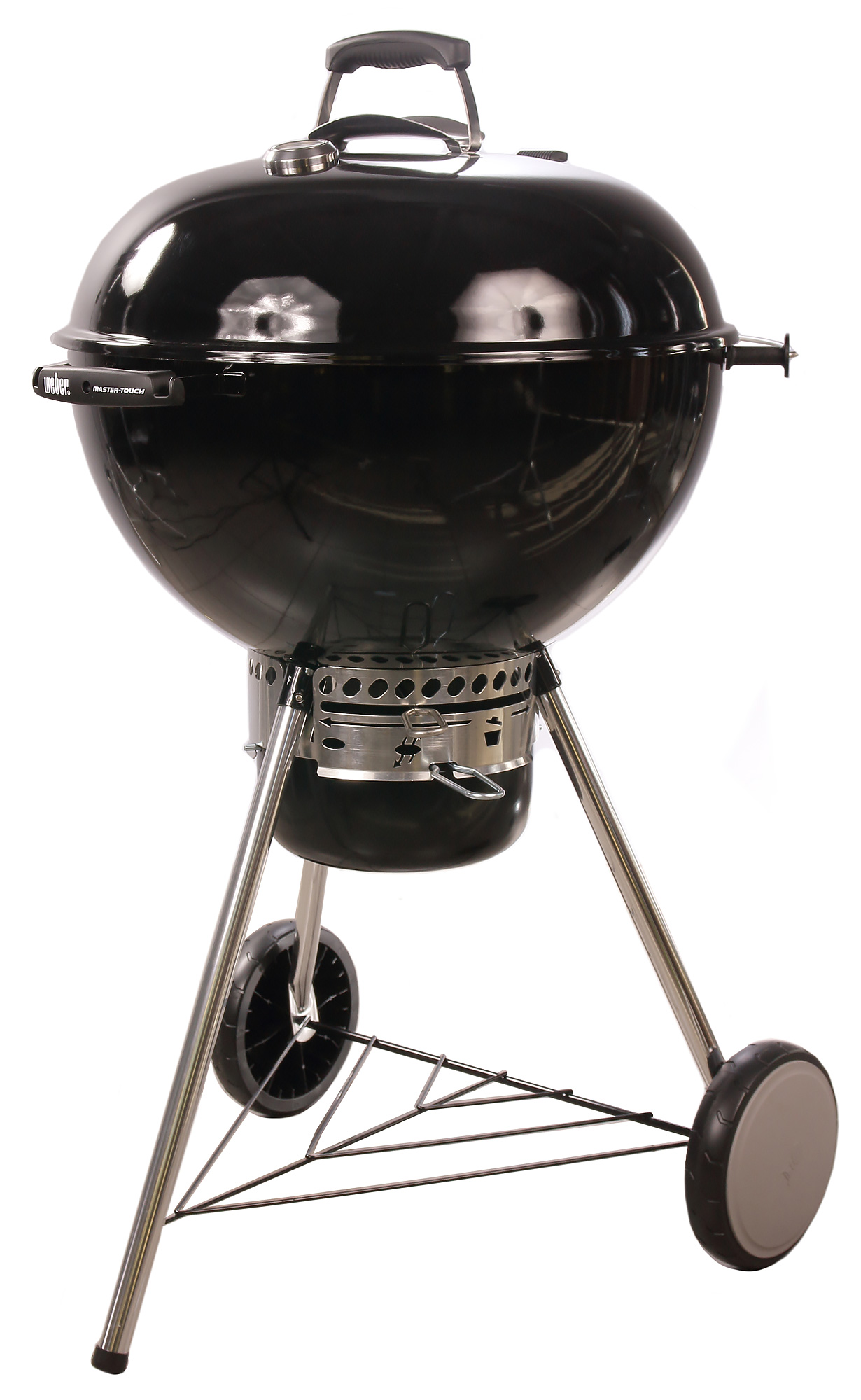Если сравнивать напрямую с веберовской продукцией, то везде немножко «труба пониже и дым пожиже»: прутья у решеток потоньше, зольник и кронштейн, в который он вставляется, менее монументальны, полушария выполнены из примерно 1,5-мм стали (мы посчитали, что до 2 мм толщина дошла за счет эмали). Нижняя заслонка представляет собой просто увеличенную копию верхней, а не три здоровенных лепестка, выполняющих к тому же роль сгребателей золы, как у Master-Touch.