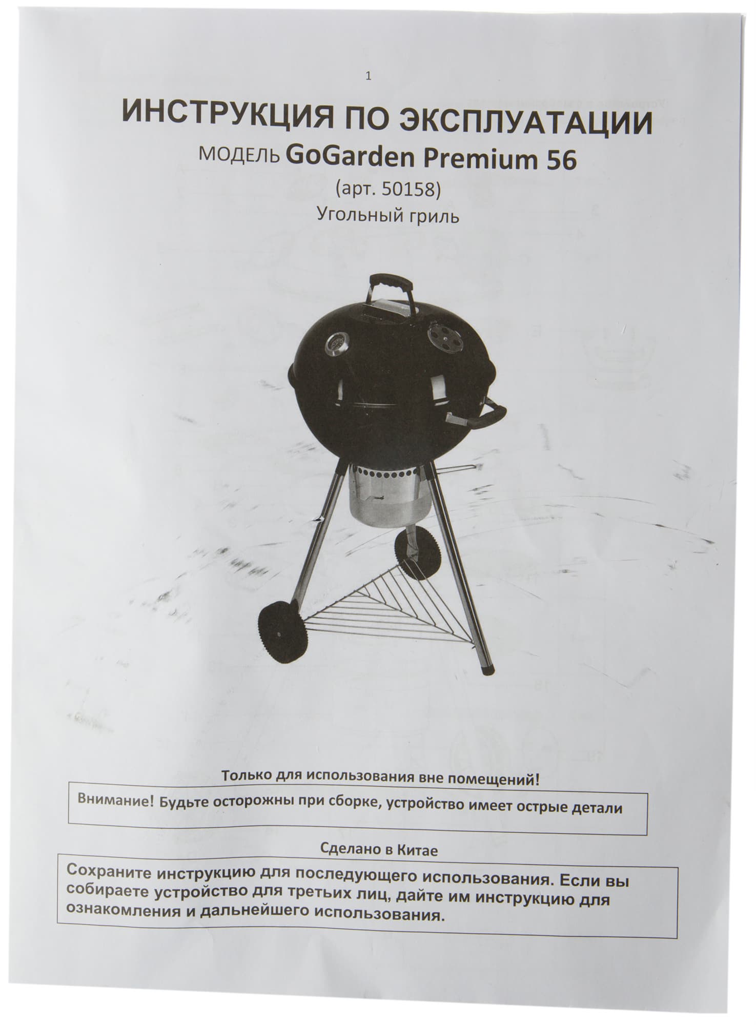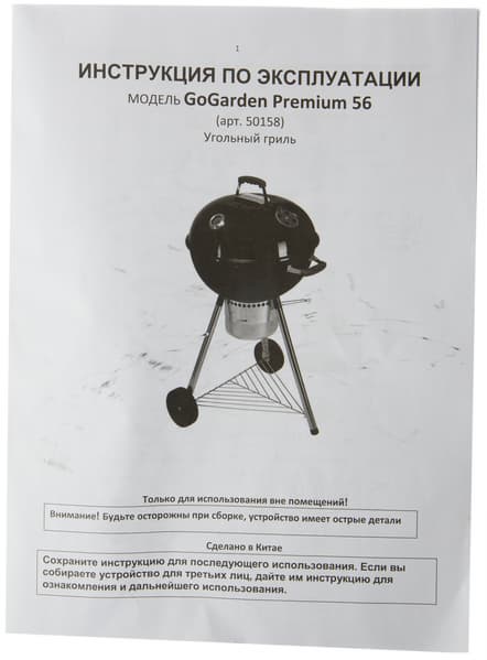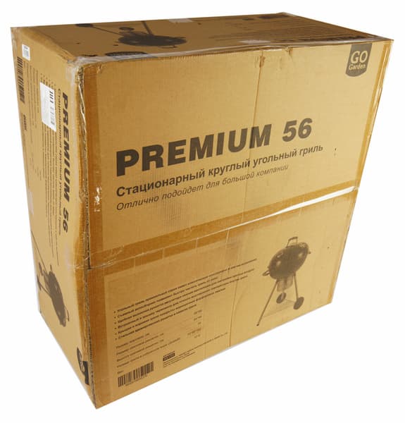 Выбор в результате пал на круглый угольный гриль GoGarden Premium 56. Уж очень он напоминал нашего старого знакомого Weber Master-Touch GBS 57 и конструкцией, и даже размерами. А это образец для подражания, скажем прямо, весьма достойный! Цена же предполагаемой копии примерно в 3-4 раза ниже, чем у оригинала, что, с нашей точки зрения, является оптимальным значением: и не откровенная дешевка, и в то же время сильная экономия при покупке.