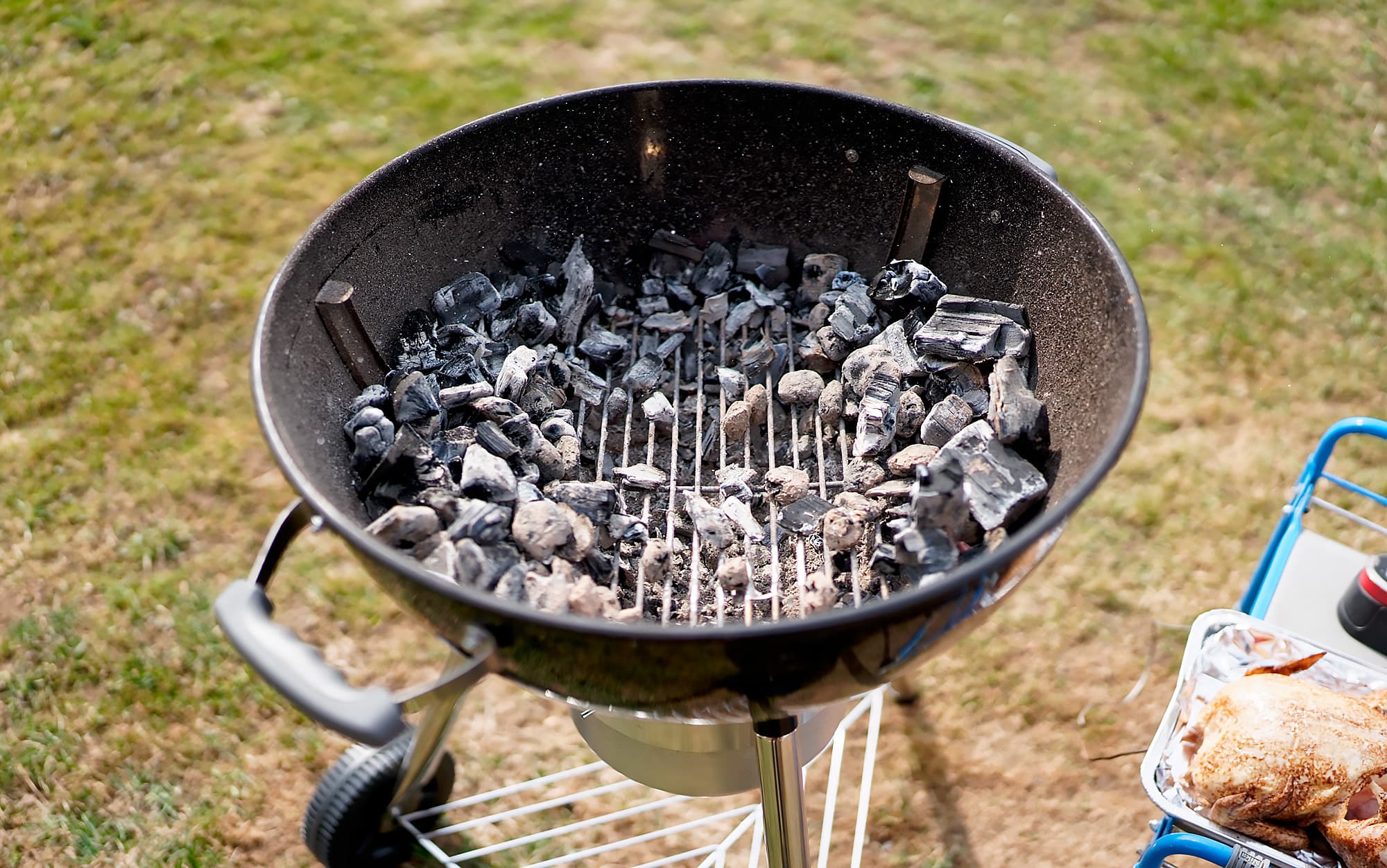 Напомним основное правило розжига углей в стартере: не нужно давать известному земноводному вас задушить и экономить «зазря сгорающие» нижние угли. Высыпать содержимое стартера в гриль следует только после того, как на самых верхних углях образовались характерные белые «подпалины» — не раньше!