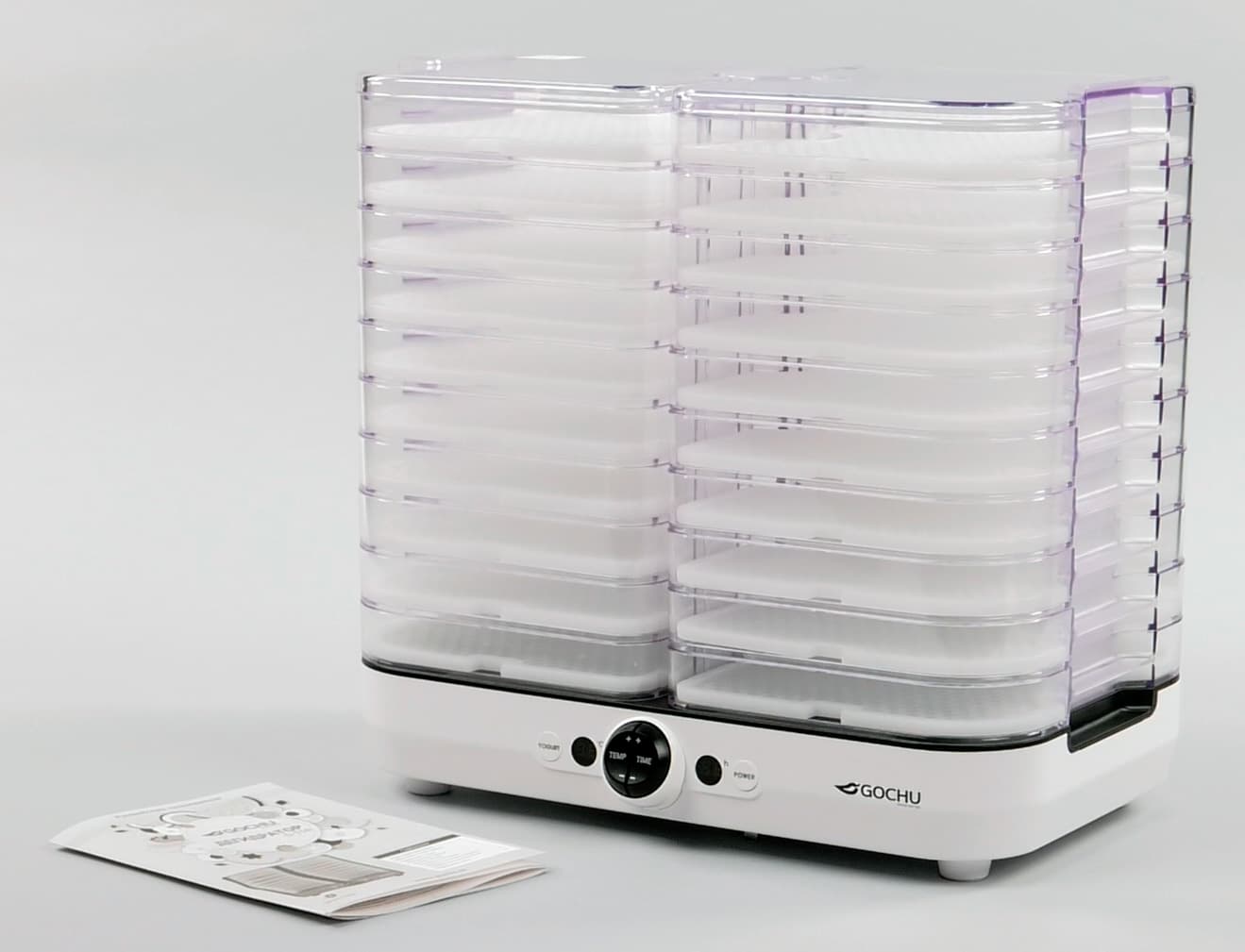 Напомним, что совсем недавно нами был протестирован корейский дегидратор L’equip IR-D5, который произвел на нас глубокое впечатление. Сегодня в лаборатории iXBT.com другой выходец из Южной Кореи, не такой инновационный, но зато в три раза дешевле. Gochu D-310 — вертикальная сушилка с 10 прозрачными лотками, что позволяет наблюдать за продуктами, находящимися внутри.