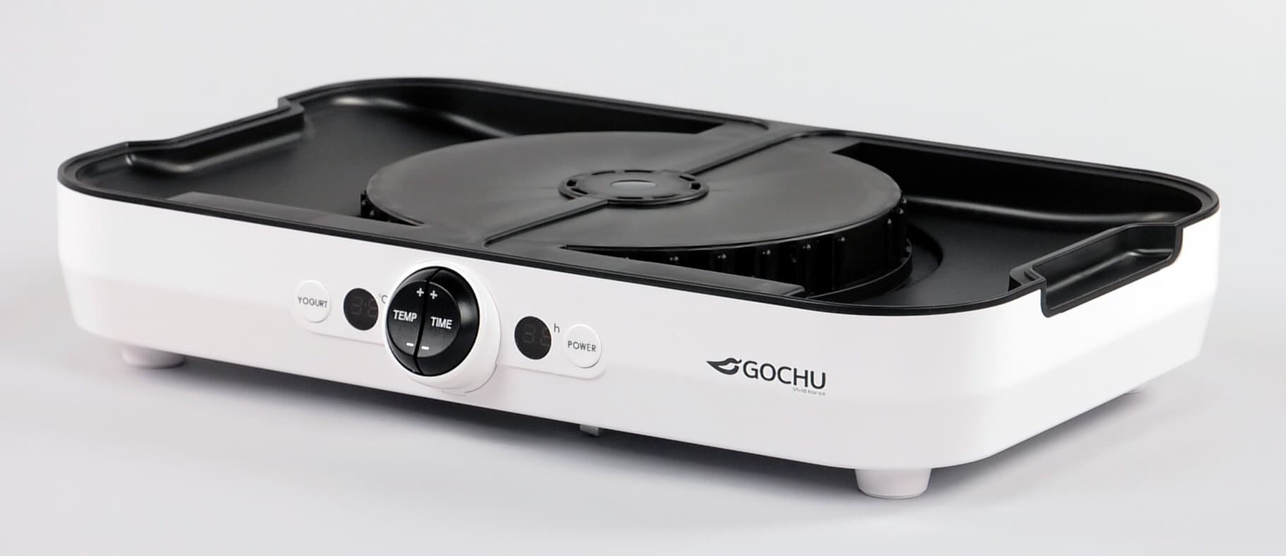 Дегидратор Gochu D-310 не отличается сложностью конструкции. Основной корпус изготовлен из пластика. Внешние стороны основания — белые, внутренняя сторона — черная. По центру расположен вентилятор. Отверстия выхода воздуха имеются как по периметру выступа, возвышающегося над вентилятором, так и в центре. Высота корпуса невелика и составляет всего 7,5 см. Строение основания не предусматривает установки поддона, что грозит попаданием крошек и остатков продуктов на внутреннюю поверхность.