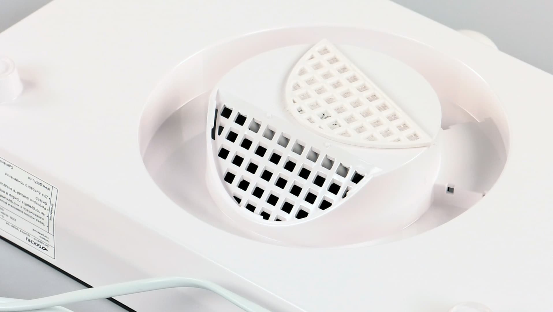Также внизу основания в выступающей над поверхностью окружностью установлен фильтр. В принципе вокруг этой части можно наматывать шнур электропитания, что облегчит хранение прибора.