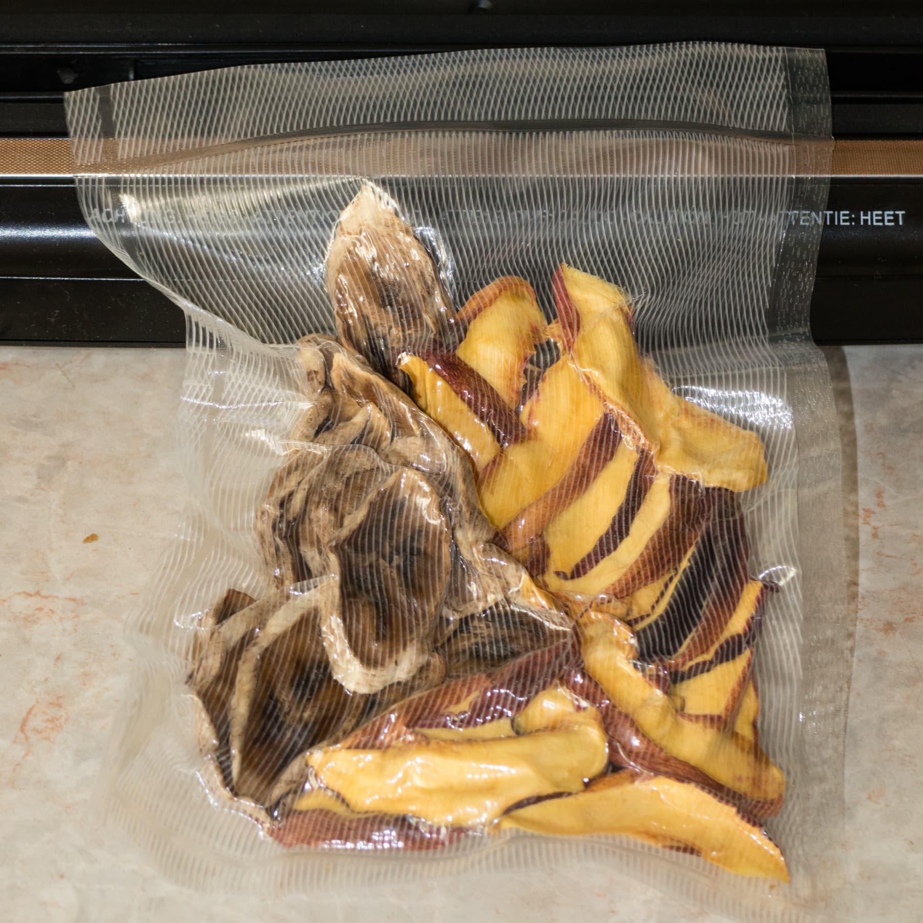 Для сохранности и удобства дальнейшего употребления часть фруктов мы расфасовали по пакетам и завакуумировали. Такие пакетики со снеками удобно хранить, брать на работу или в поездку, а также использовать в качестве маленького приятного подарка.