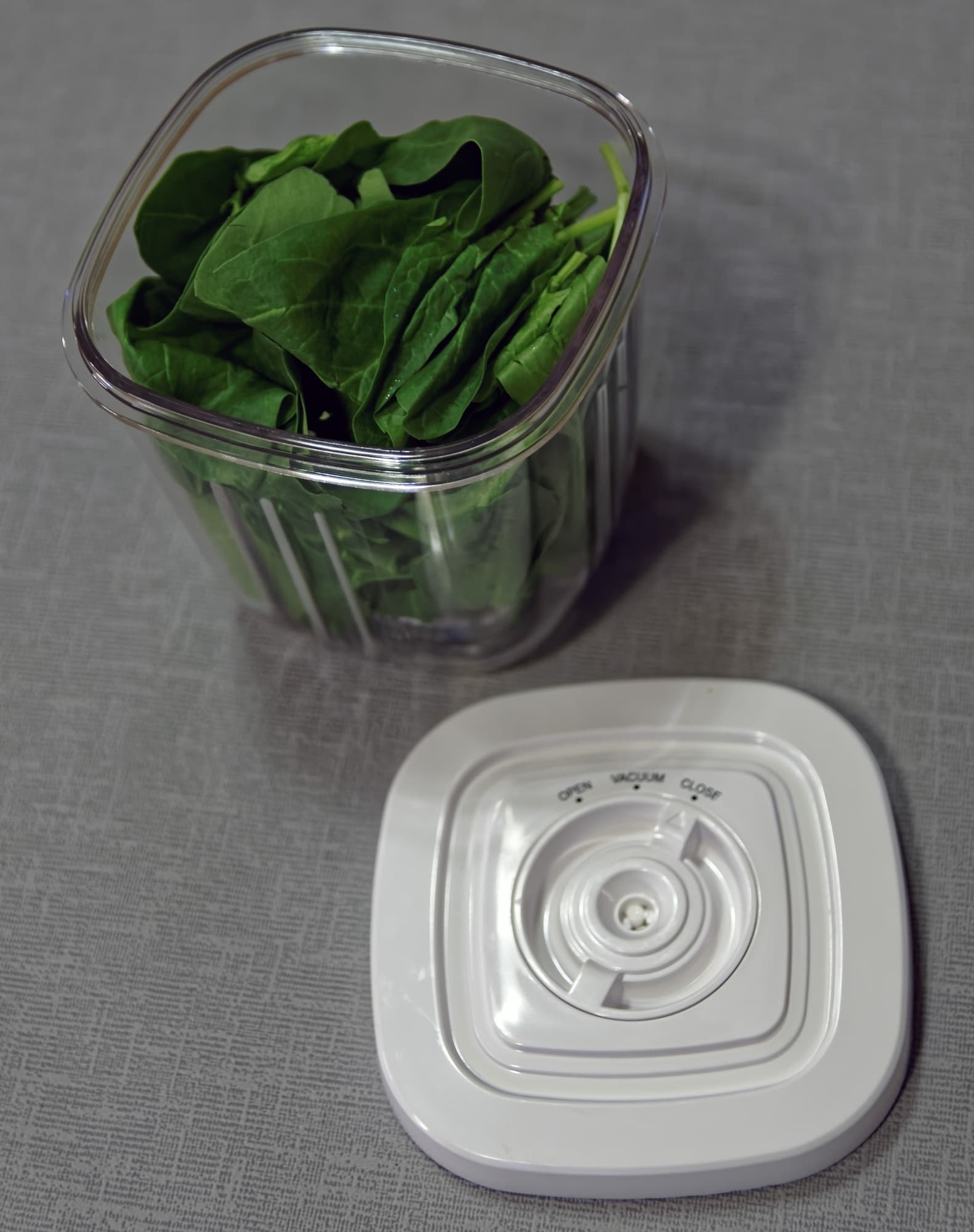 Взяли полкило рукколы в пластиковой коробочке из супермаркета. Обычно, если ее вскрыть, до следующего дня листья не доживают. Мы же затолкали все полкилограмма в большой контейнер, откачали воздух и подождали целую неделю.