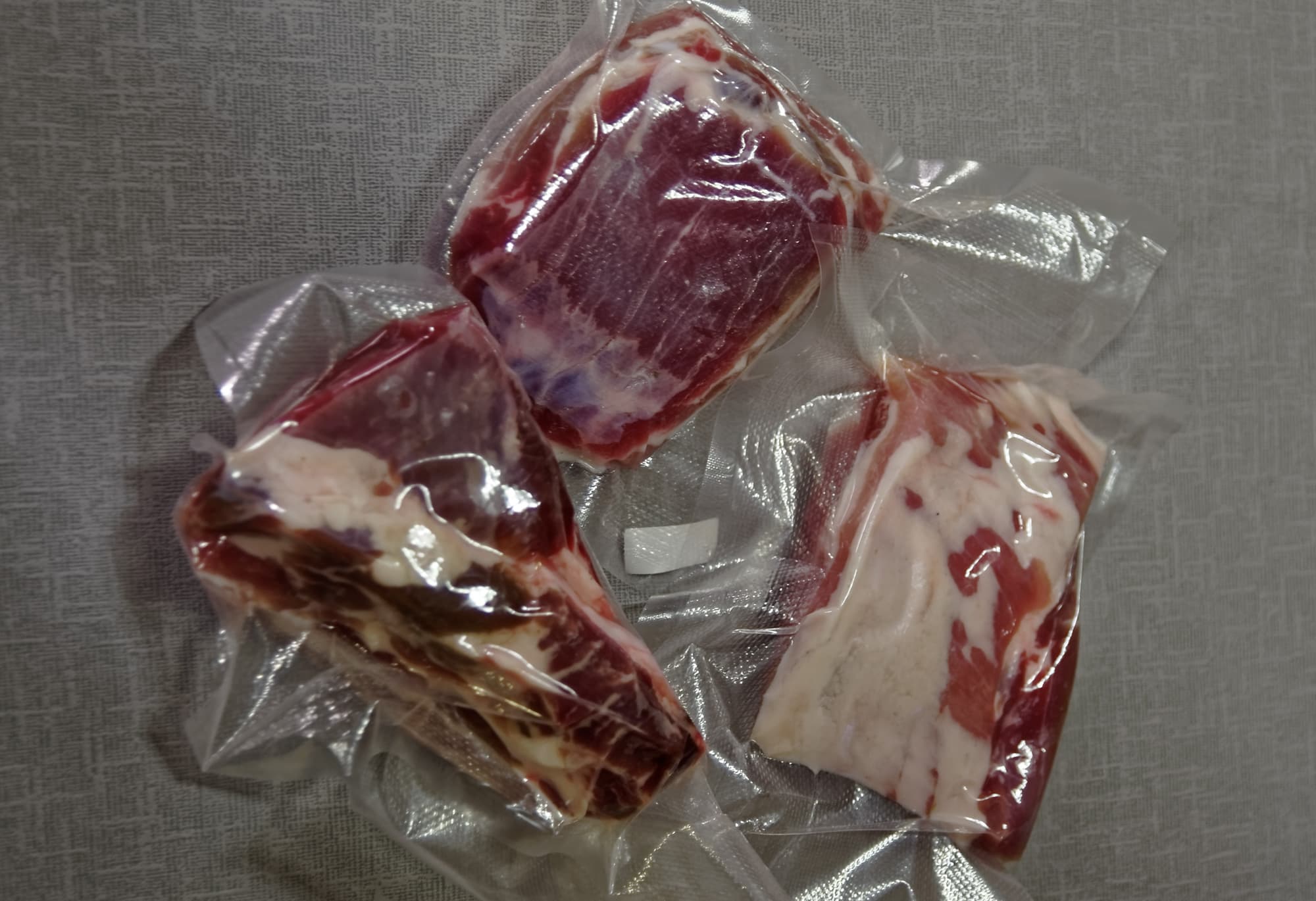 Разобравшись с тем, как работает упаковщик, мы отрезали от рулона небольшой пакет и завакуумировали стейки из свежей форели без соли и специй. Цель — проиллюстрировать, насколько хорошо Gochu VAC-470 поможет продлить срок жизни сырых продуктов, не подвергавшихся тепловой обработке.