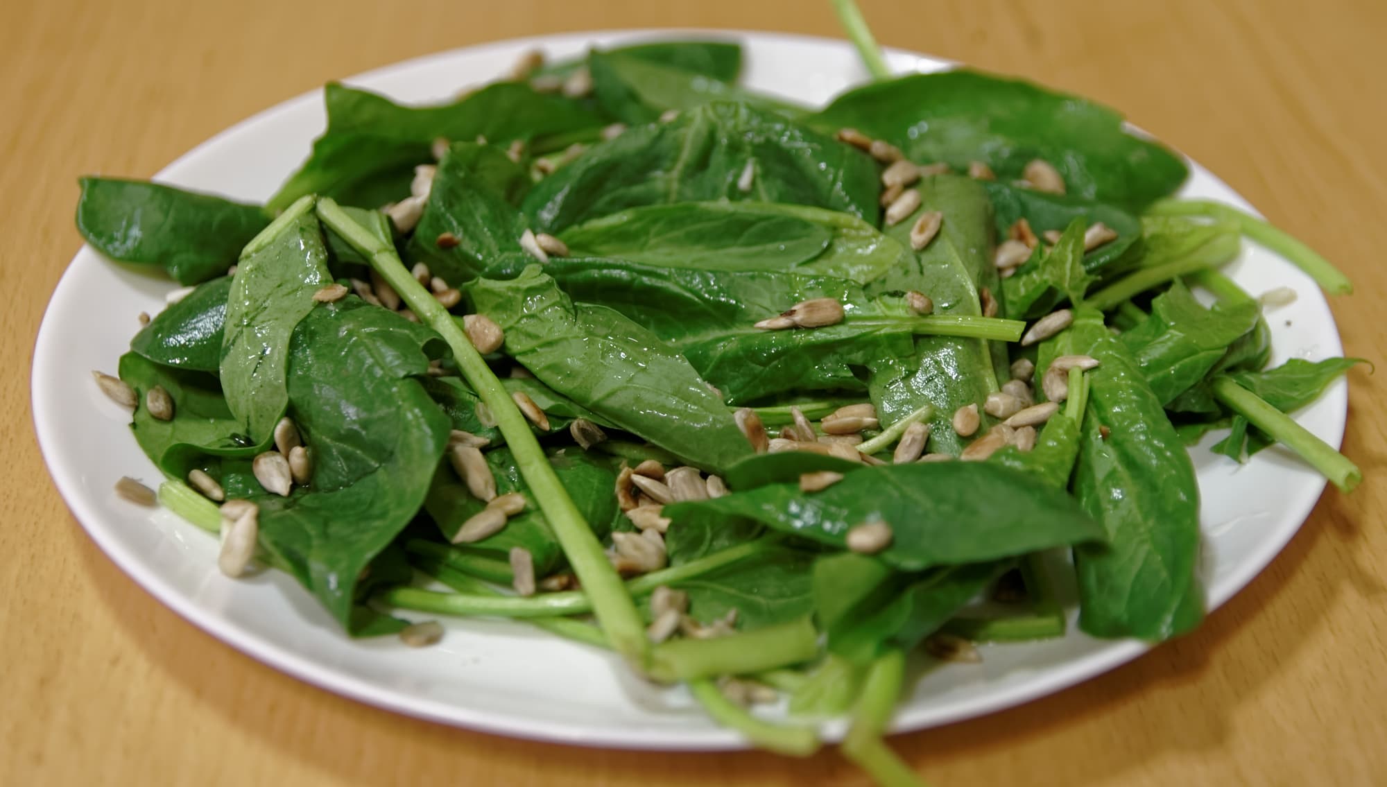 Из шпината сделали отличную закуску: посолили, заправили лимонным соком и мелконарезанным зубчиком чеснока, посыпали обжаренными семечками.