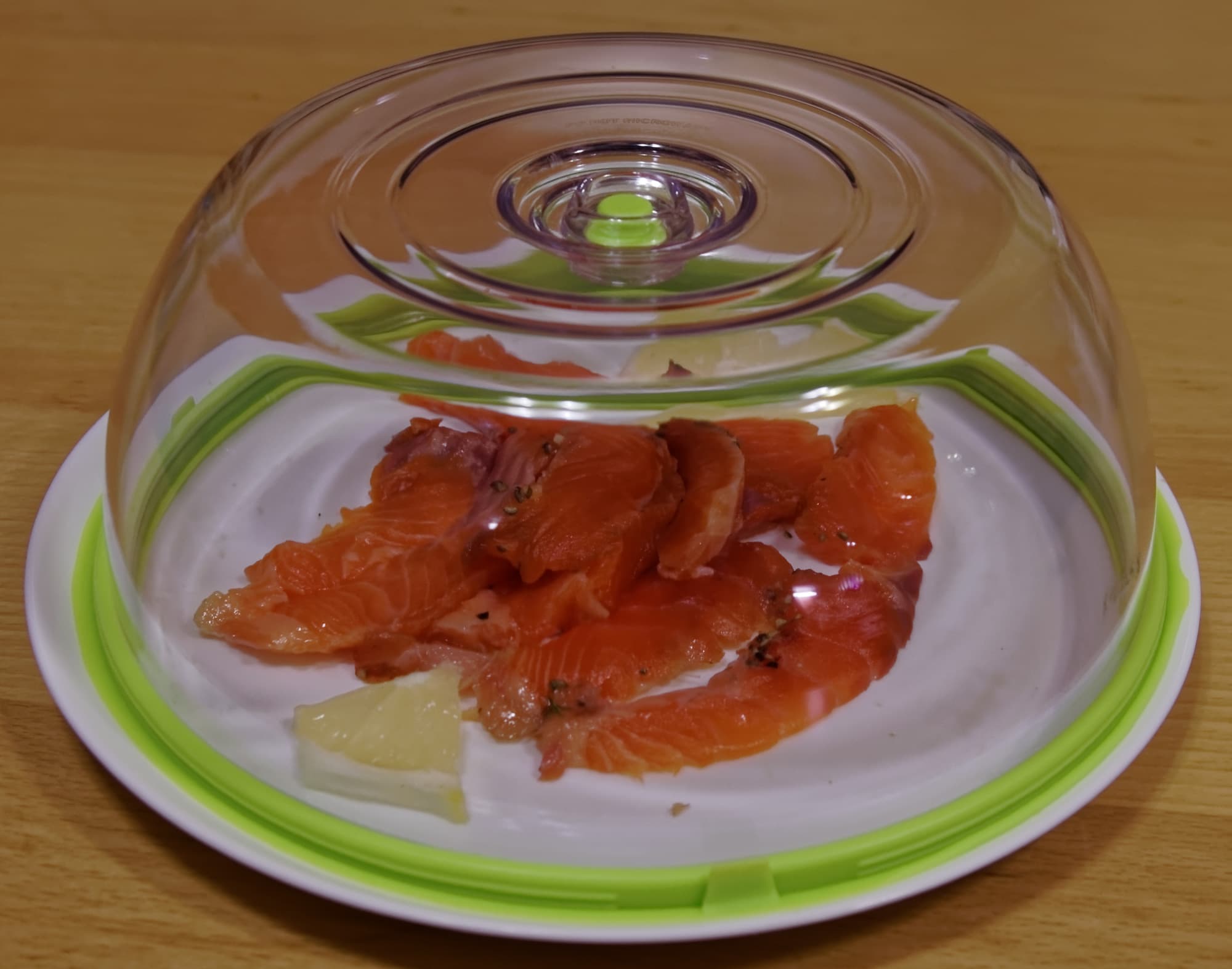 Колпак просто ставится на тарелку с продуктом и при откачке воздуха плотно «присасывается» к ней. Сыр пролежал под колпаком два дня, не высох и не заветрился.