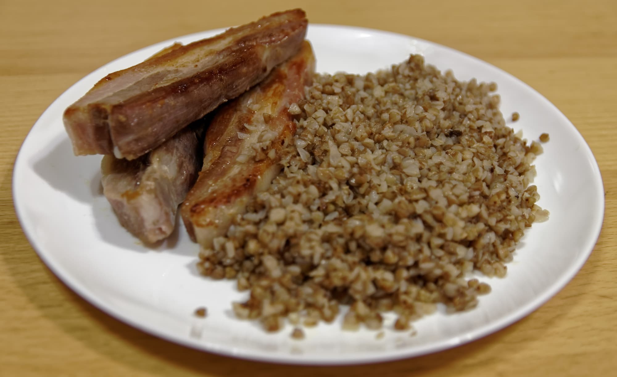Через несколько дней их достали из холодильника и обжарили по минуте с каждой стороны: в су-виде ребра уже приготовились, оставалось их разогреть и подрумянить. Ребра оказались нежными и сочными.