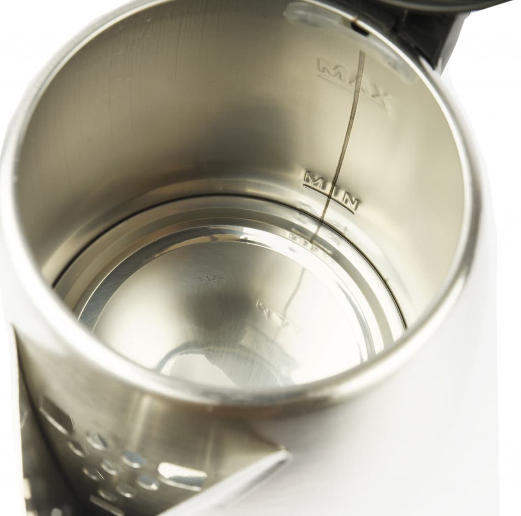 Стальной корпус ощутимо нагревается — не до ожога, но прикосновение к нему сразу после кипячения неприятно. Ручка и основание остаются комнатной температуры. Под крышкой скапливается конденсат, его немного, на работу чайника он не влияет.