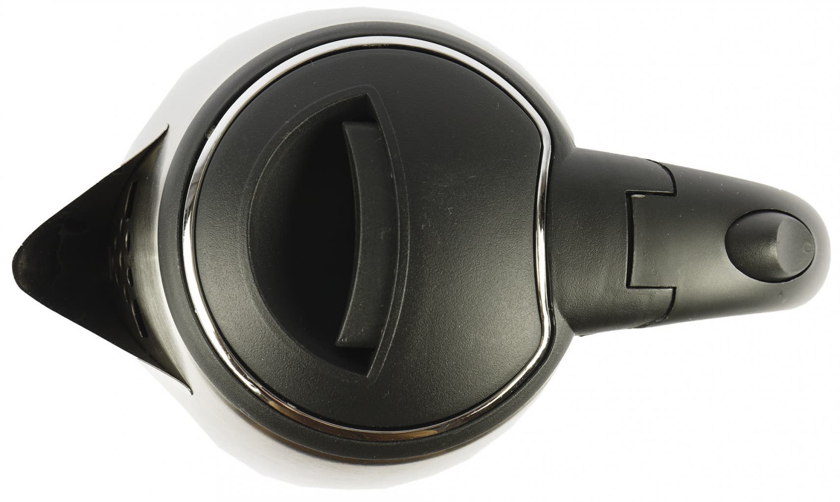 Корпус серебристой модели сделан из нержавеющей стали, остальные детали (крышка, ручка, основание) — из черного пластика. У чайника довольно консервативная, узнаваемая форма «кувшина», самого стандартного вида. Бо́льшая часть недорогих чайников многих брендов выглядят плюс-минус так же. Для тех, кто ищет нейтральности и простоты, это отличный (или хотя бы привычный) выбор.