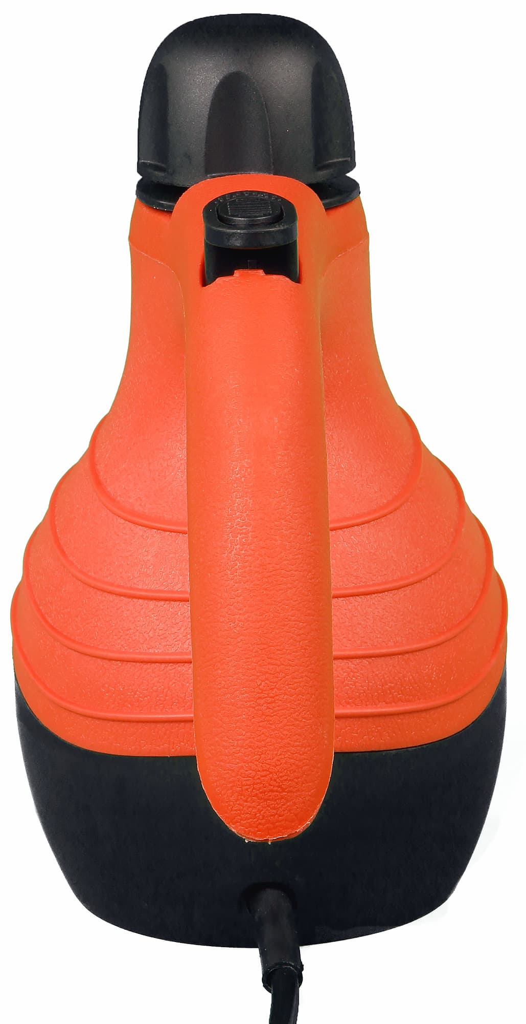Пластик черного цвета гладкий на ощупь, красный — шершавый, что позволяет отдельным частям прибора не скользить в руках. Так, ручка, имеющая специальные выступы с внутренней стороны и достаточную длину, не скользит и удобно располагается в руках, распределяя вес на все предплечье.