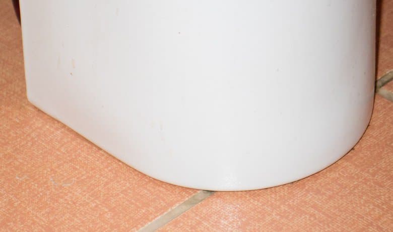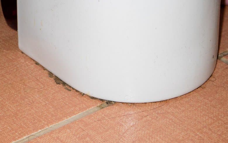 Порадовались и спустились вниз, к основанию раковины. Вот так выглядел стык пьедестала раковины с напольным кафелем. Жутковато, если приглядеться.