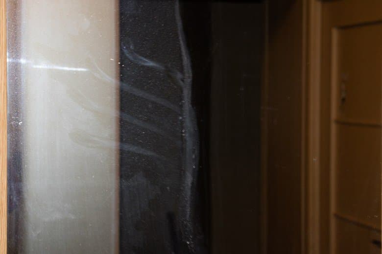 В этом опыте мы очищали зеркало в прихожей. Предмет интерьера был не столько грязным, сколько запыленным. Надели на прибор специальную насадку распыления для дверей и окон, нагрели и приступили к работе.