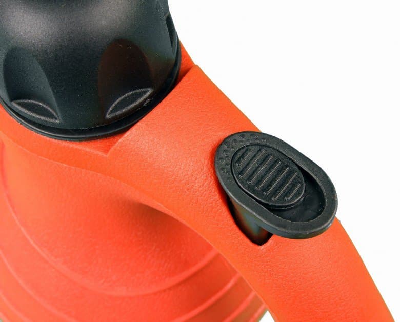 Чтобы из носика или насадок пошел пар, достаточно надавить на кнопку, которая находится в верхней части ручки как раз под большим пальцем руки.