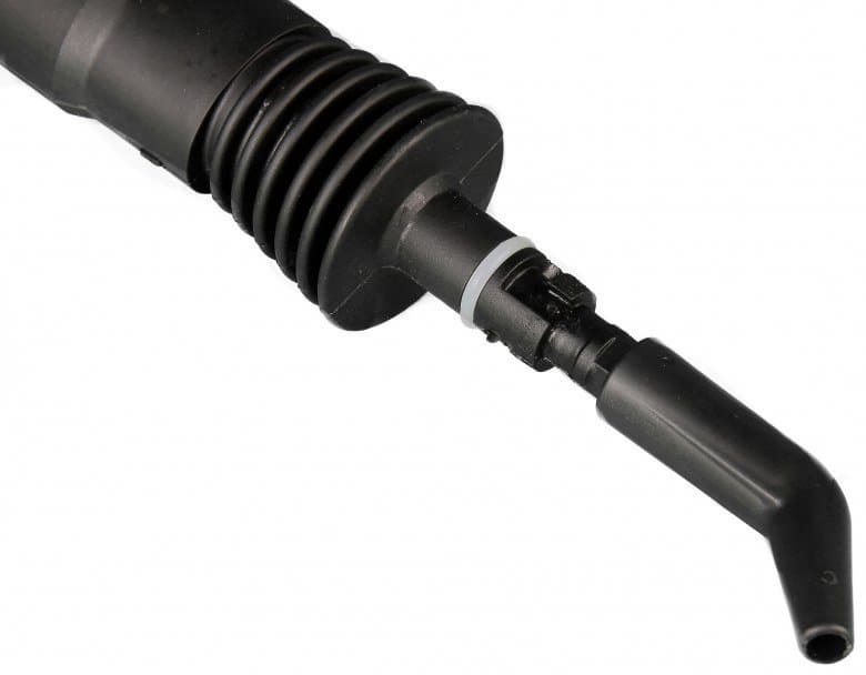 По центру удлиненной насадки распыления вставлен небольшой по длине шланг, края соединения которого защищены от повреждений при эксплуатации кожухом. Шланг гибкий и позволяет вращать распылителем в любом направлении. Общая длина насадки 52,5 см.
