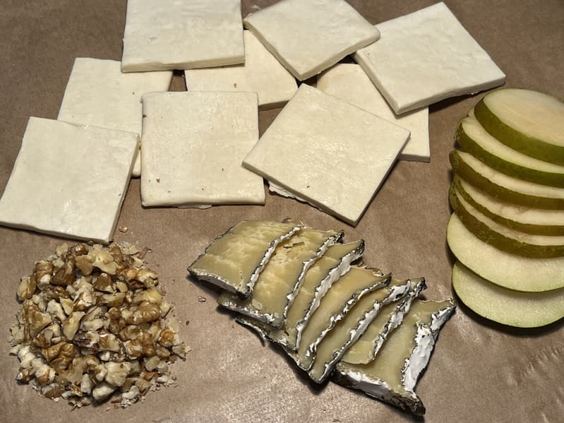 Слоеные булочки с грушей, козьим сыром с плесенью и грецким орехом