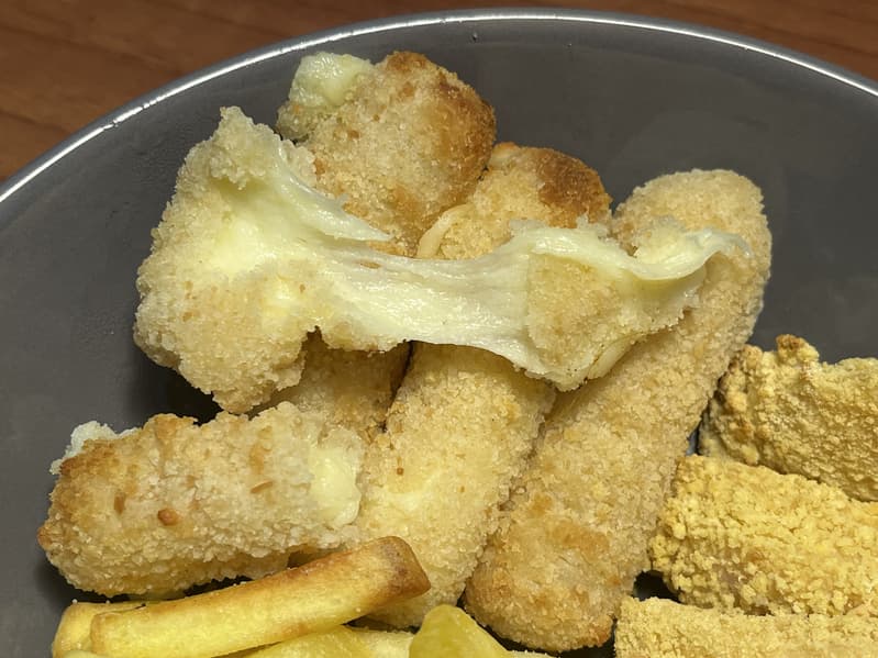 И ароматные сырные палочки с куриными стрипсами.