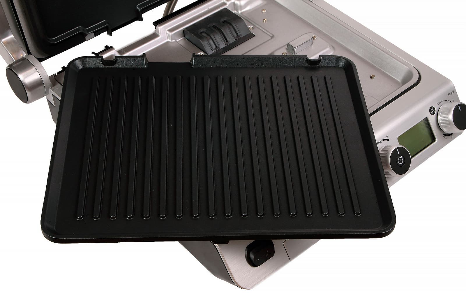 Панели у контактных грилей бывают съемные (у более дорогих моделей) либо несъемные (у более дешевых). В случае, если нет необходимости сэкономить, мы однозначно рекомендуем остановить свой выбор на съемных панелях: они крепятся к корпусу прибора с помощью специальных защелок и без труда «отщелкиваются» нажатием на специальную кнопку.