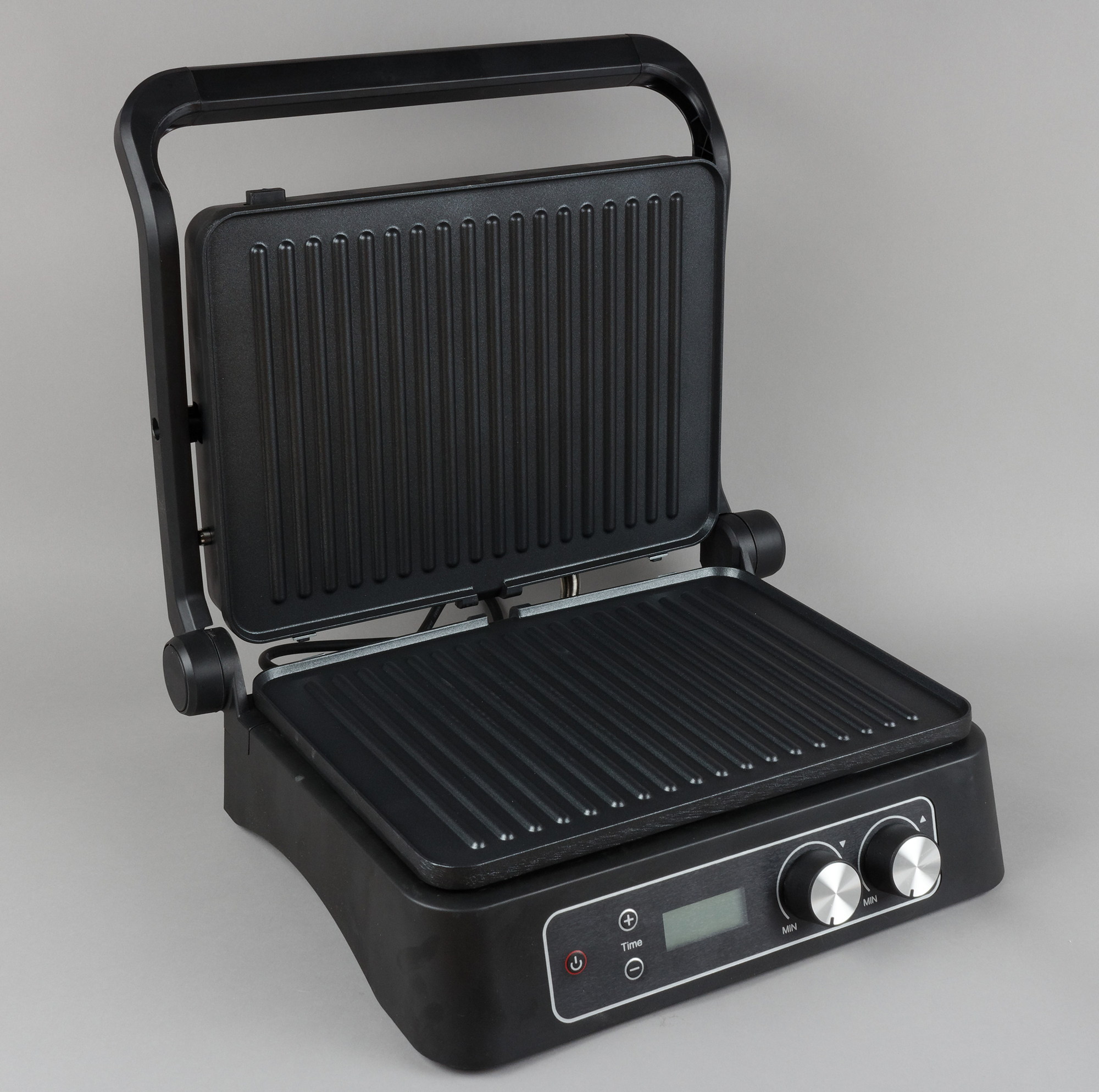 Также прибор превосходно проявил себя в качестве жаровни. Нагрев достаточен для подрумянивания влажных овощей и быстрого приготовления стейка нужной степени прожарки. Управление несложное, независимый нагрев панелей позволяет выставлять различную температуру или вообще отключать одну из панелей. Ну а таймер с автоматическим отключением позволит отойти от гриля и заняться другими делами, пока продукты жарятся.