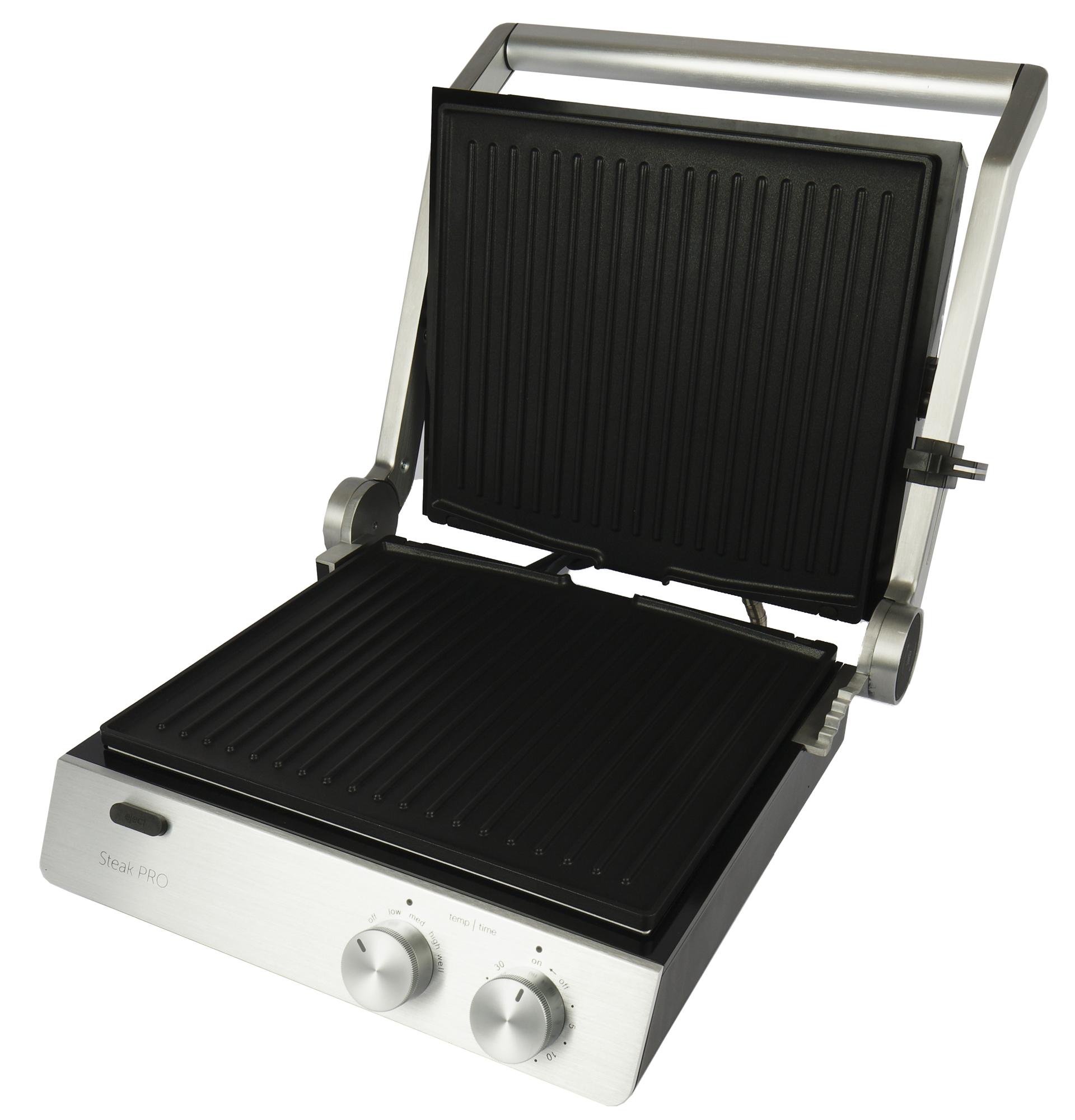 Среди ключевых особенностей данной модели отметим возможность независимой регулировки температуры для верхней и нижней панели от 60 до 230 °C. Как мы выяснили в ходе тестирования, гриль идеально подходит для жарки говяжьих стейков и приготовления множества других блюд.