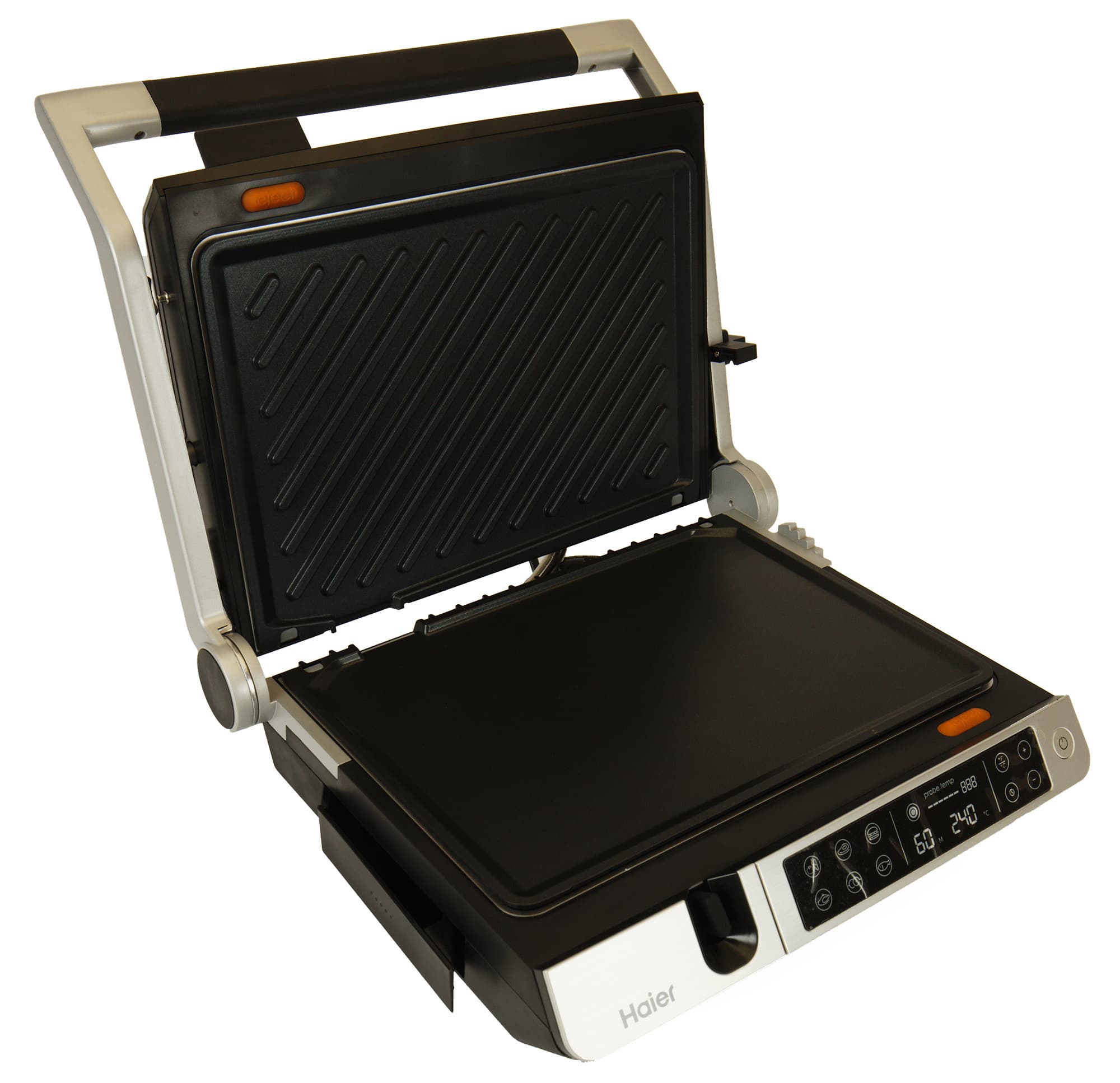 В тестовую лабораторию iXBT.com регулярно попадают компактные электрические грили. Haier HG-701 довольно мощный гриль со съемными панелями, сенсорным управлением, таймером и термощупом. Он умеет жарить продукты при диапазоне температур панелей от 80 до 240 °C.
