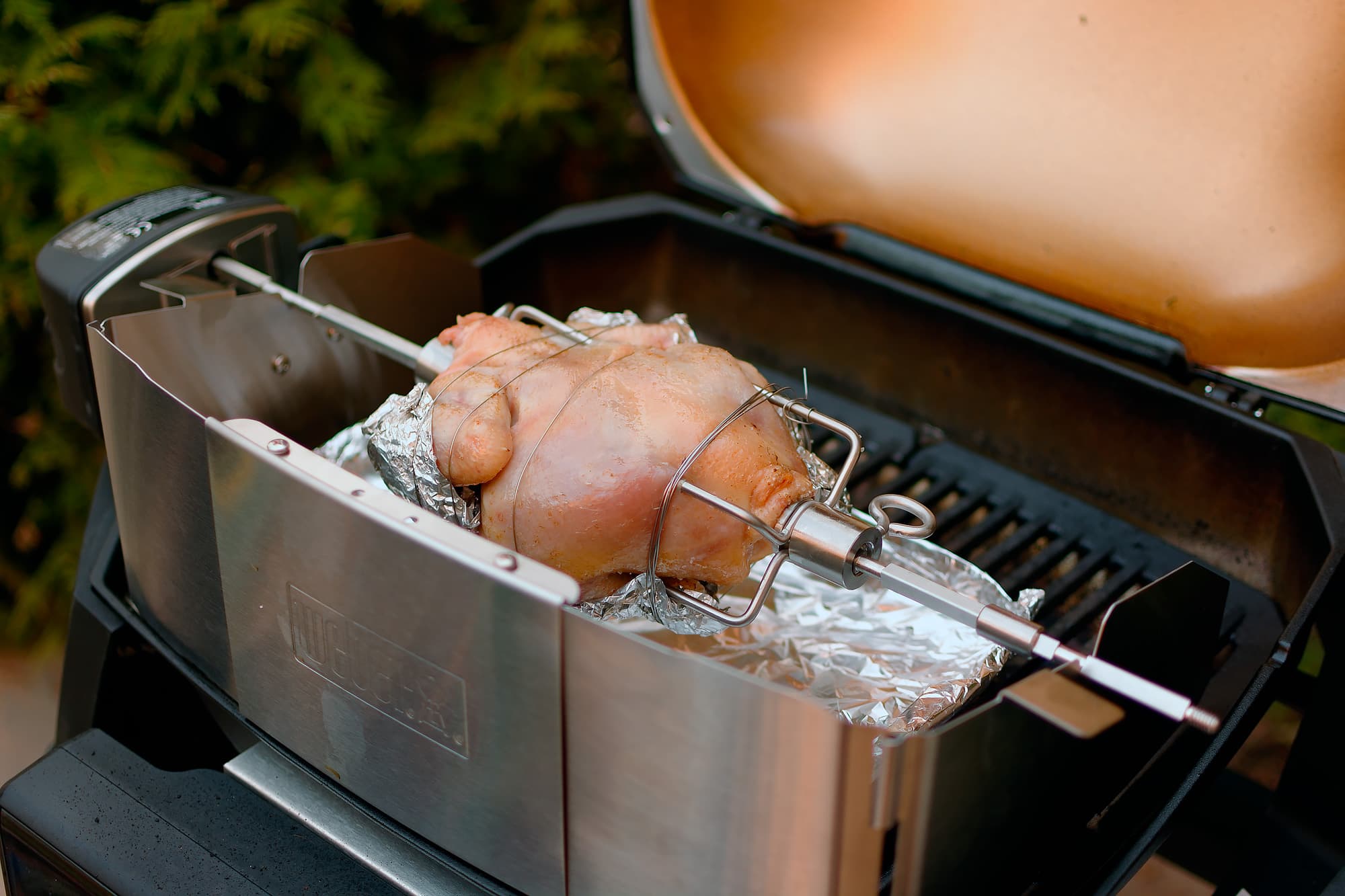 Электрический гриль Weber Pulse 2000 — удобная вещь для людей, которые любят, чтобы было красиво, удобно, легко и вкусно. Он позволяет круглогодичное использование на террасах и верандах, а также на обычных балконах жилых домов. Мощность прибора составляет 2300 Вт, чего оказалось более, чем достаточно как для прожарки крупных кусков мяса, так и для приготовления целого цыпленка на вертеле.