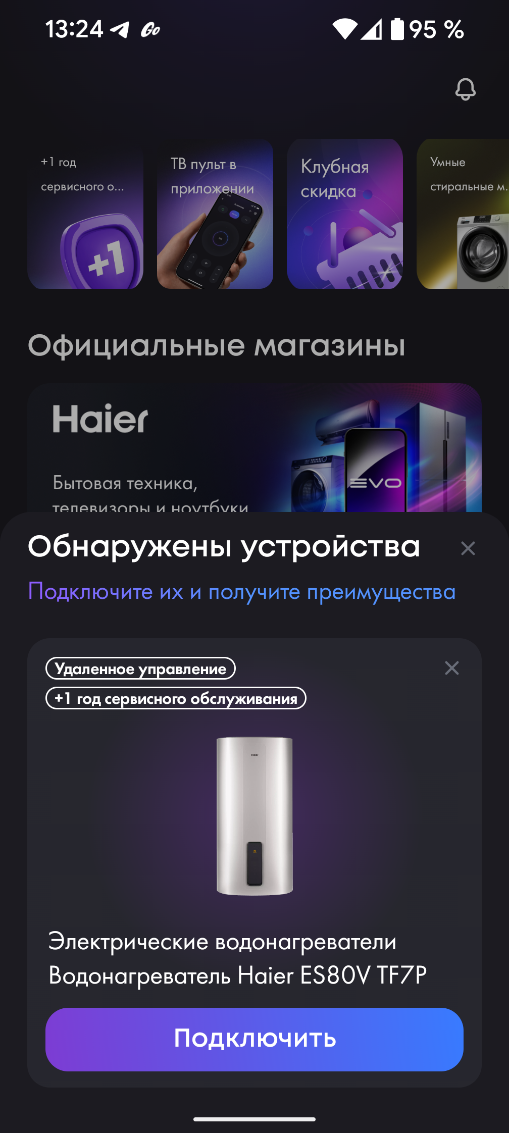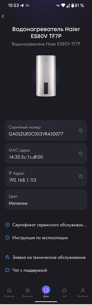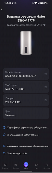 Фирменная экосистема предоставляет возможности управления множеством моделей техники Haier. Приложение насчитывает более 100 тысяч скачиваний и имеет хорошую репутацию: на момент подготовки обзора его рейтинг составляет 4,1 из 5 на основе 10 тысяч отзывов. Перед подключением оно напоминает, что при регистрации серийного номера устройства пользователь может расширить гарантию, получив дополнительный год сервисного обслуживания.