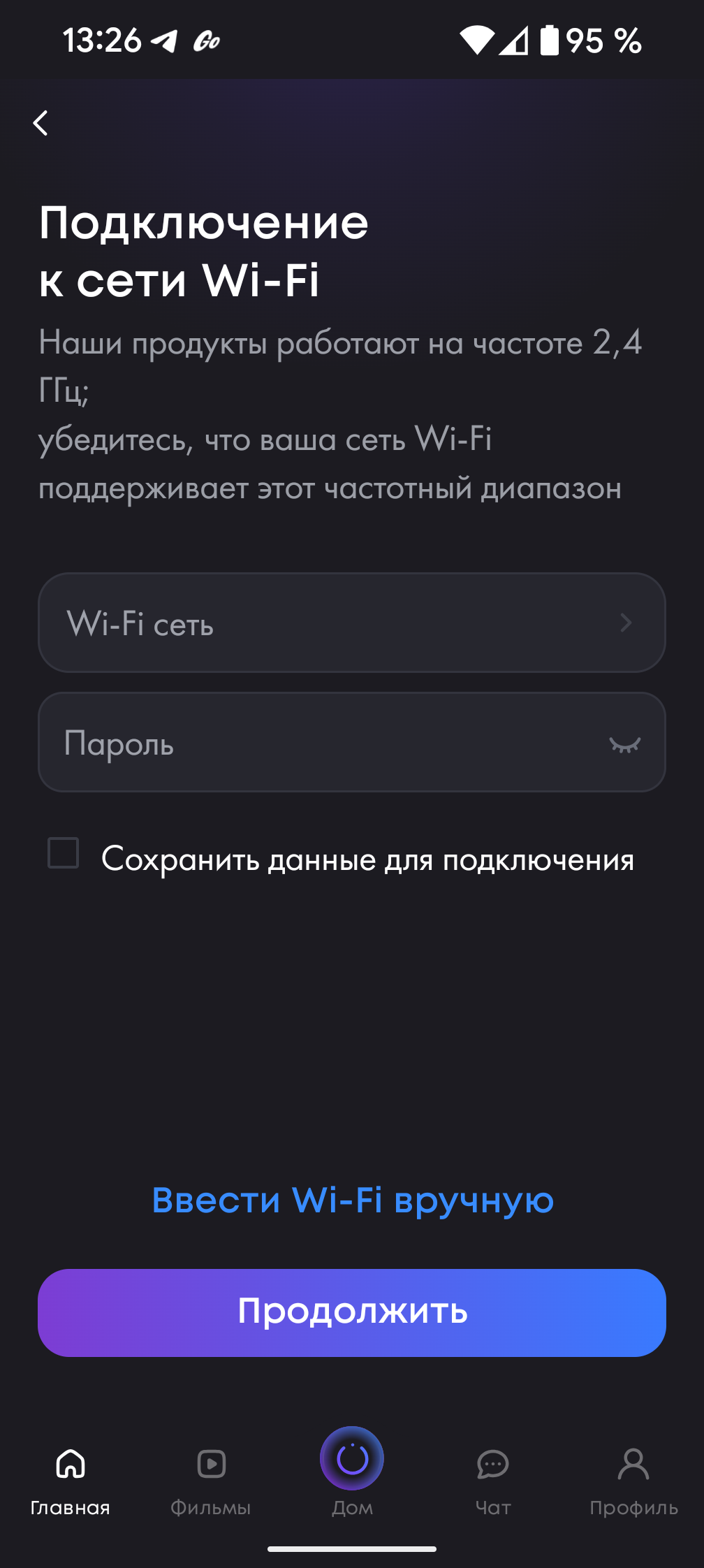 Для использования программы требуется регистрация с подтверждением номера телефона. Можно воспользоваться также входом с Яндекс ID. Как обычно, после аутентификации мы предоставляем приложению права на доступ к обнаружению новых устройств и нажимаем на кнопку «Добавить устройство» на главном экране.