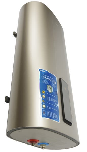 У накопительного водонагревателя Haier ES80V TF7P(R) хорошая термоизоляция, обеспечивающая неплохую экономичность, а стильный внешний вид отличает эту модель от большинства классических конструкций. Благодаря большому объему и высокой мощности устройство может обеспечить горячей водой большую семью.