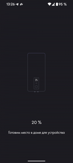 Чтобы бойлер обнаружился, его следует вывести из спящего режима нажатием на кнопку «Power» и следовать инструкциям. Приложение запрашивает данные для подключения к нашей беспроводной сети и через непродолжительное время устройство появляется на главном экране. На последнем этапе происходит автоматическое обновление встроенной микропрограммы.