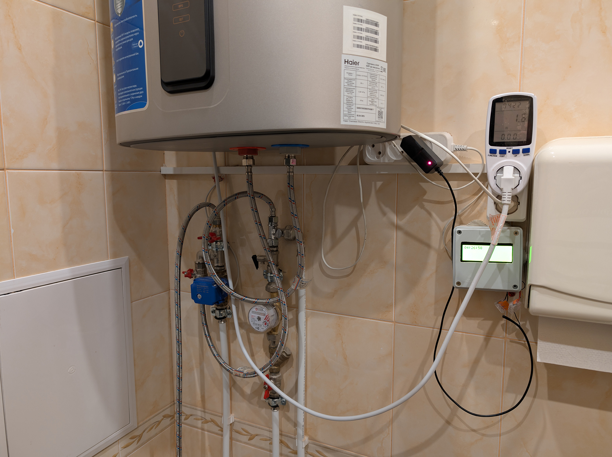 Целью следующего эксперимента было установить, какое количество электроэнергии прибор тратит при расходе воды, равномерно распределенном по времени суток. Чтобы смоделировать такую ситуацию, мы воспользовались шаровым клапаном с электроприводом, подключенным к выпускному штуцеру прибора.
