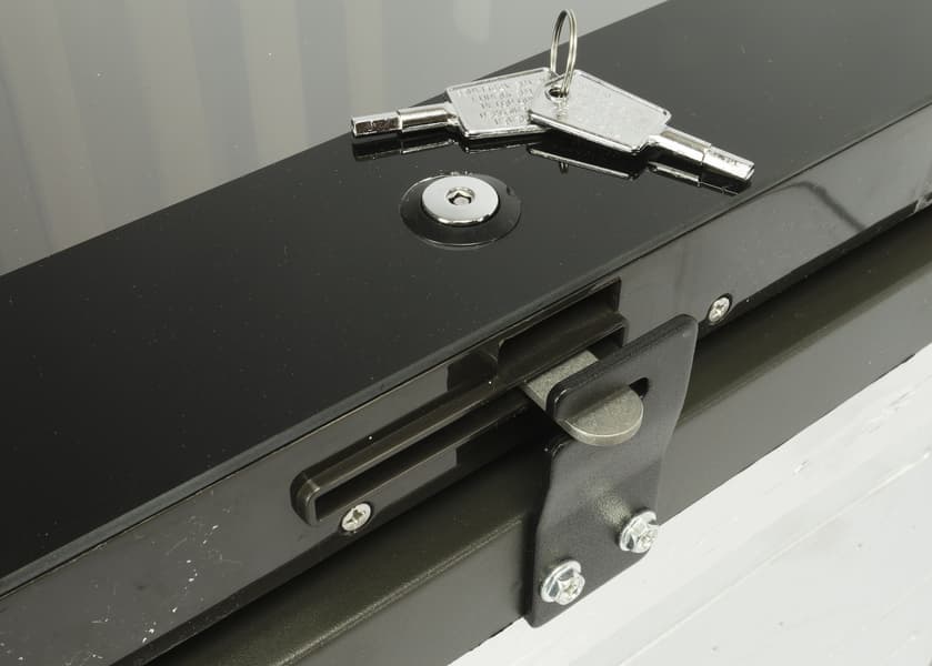 Защита содержимого шкафа от детей механическая: он запирается на ключ. У пятигранной болванки нет никаких признаков секретного механизма, так что серьезным препятствием от взрослых замок назвать сложно. Его задача — оградить коллекцию от детского любопытства.