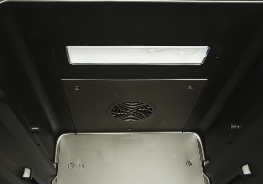 На потолке камеры — большой светодиодный светильник, рядом с ним находится вентиляционное отверстие. Такие же светильники, но поменьше, есть и на боковых стенках.
